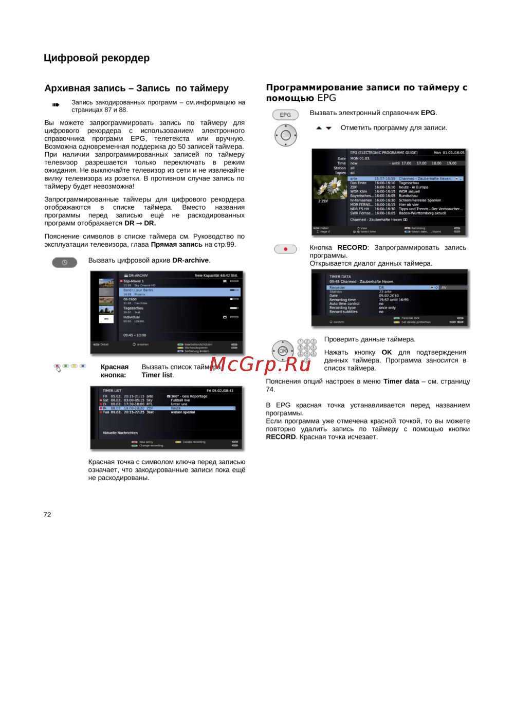эксплуатации телевизора, глава Прямая запись на стр.99.