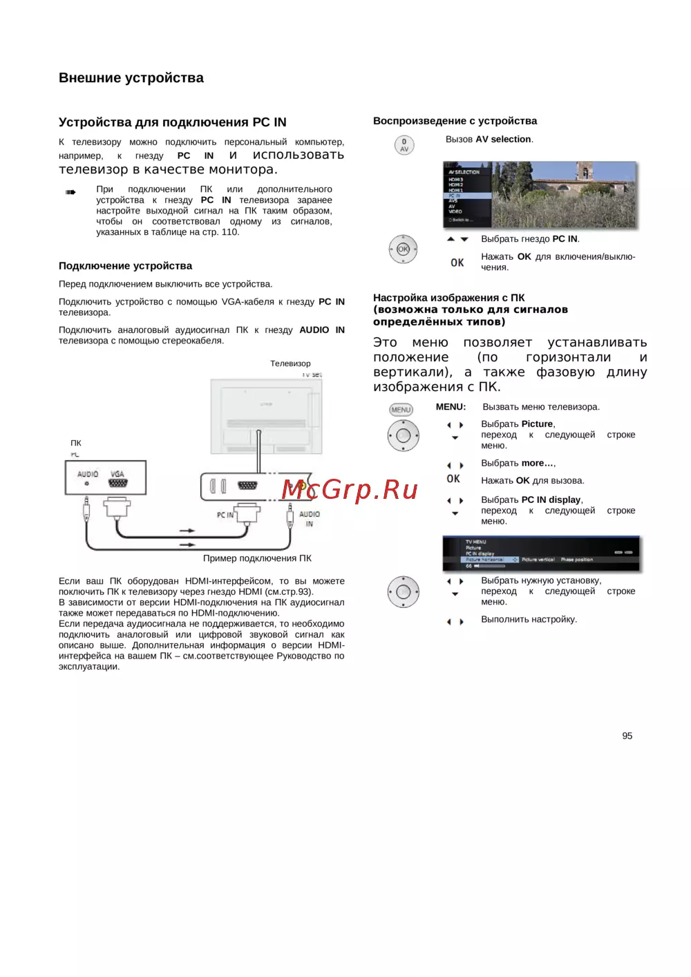 - Электрические характеристики сигналы поступающие по pc in hdmi p.119