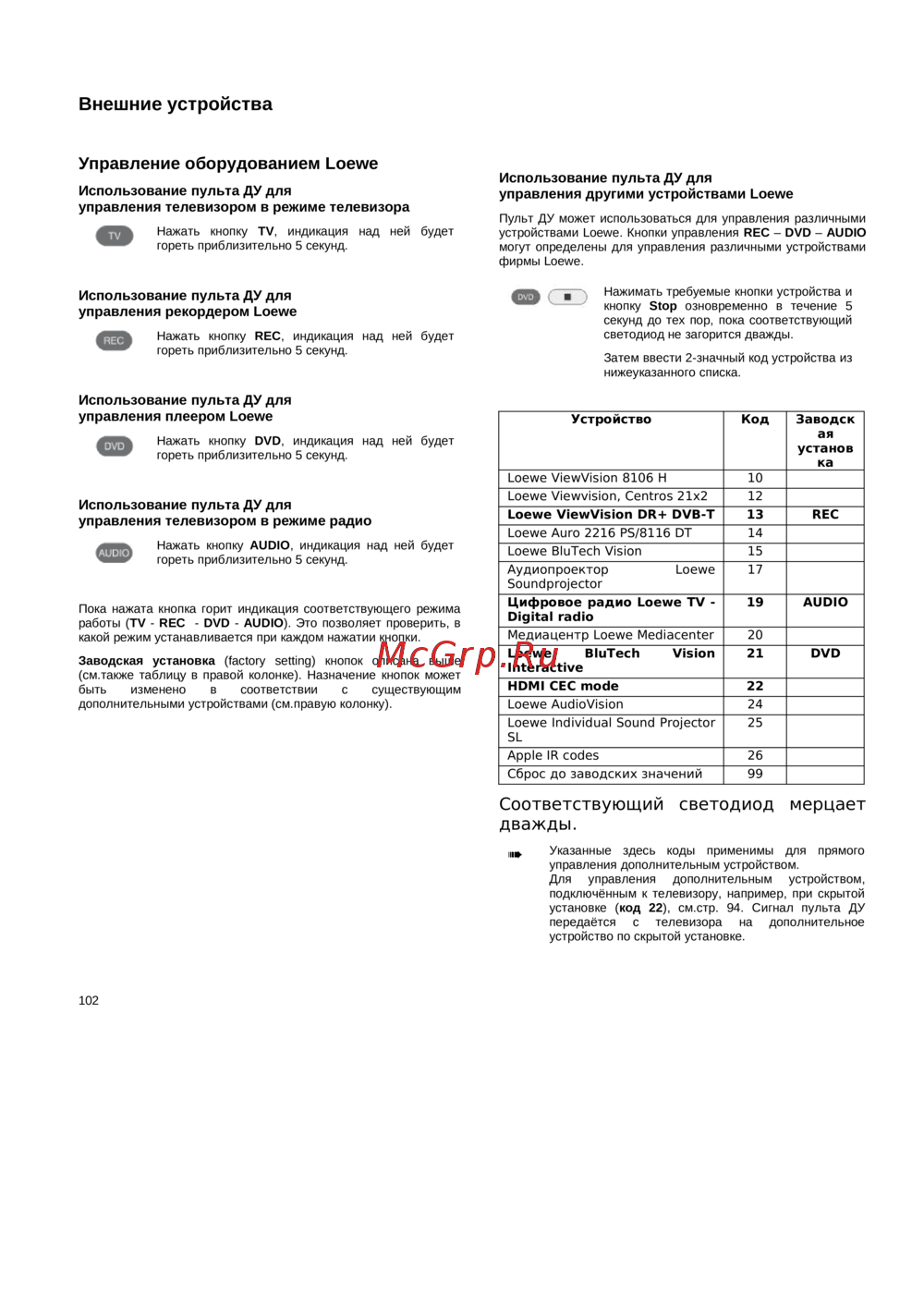 - Использование пульта ду для управления другими устройствами loewe p.111