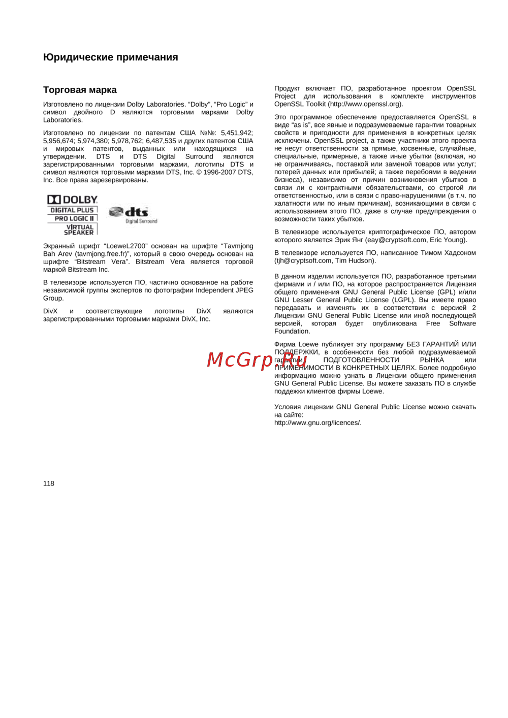 Loewe Xelos 32 50422T80 Silver [127/138] Юридические примечания
