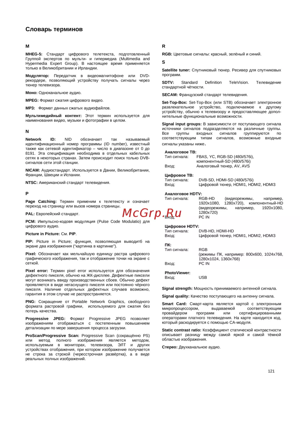 - Электрические характеристики сигналы поступающие по pc in hdmi p.119