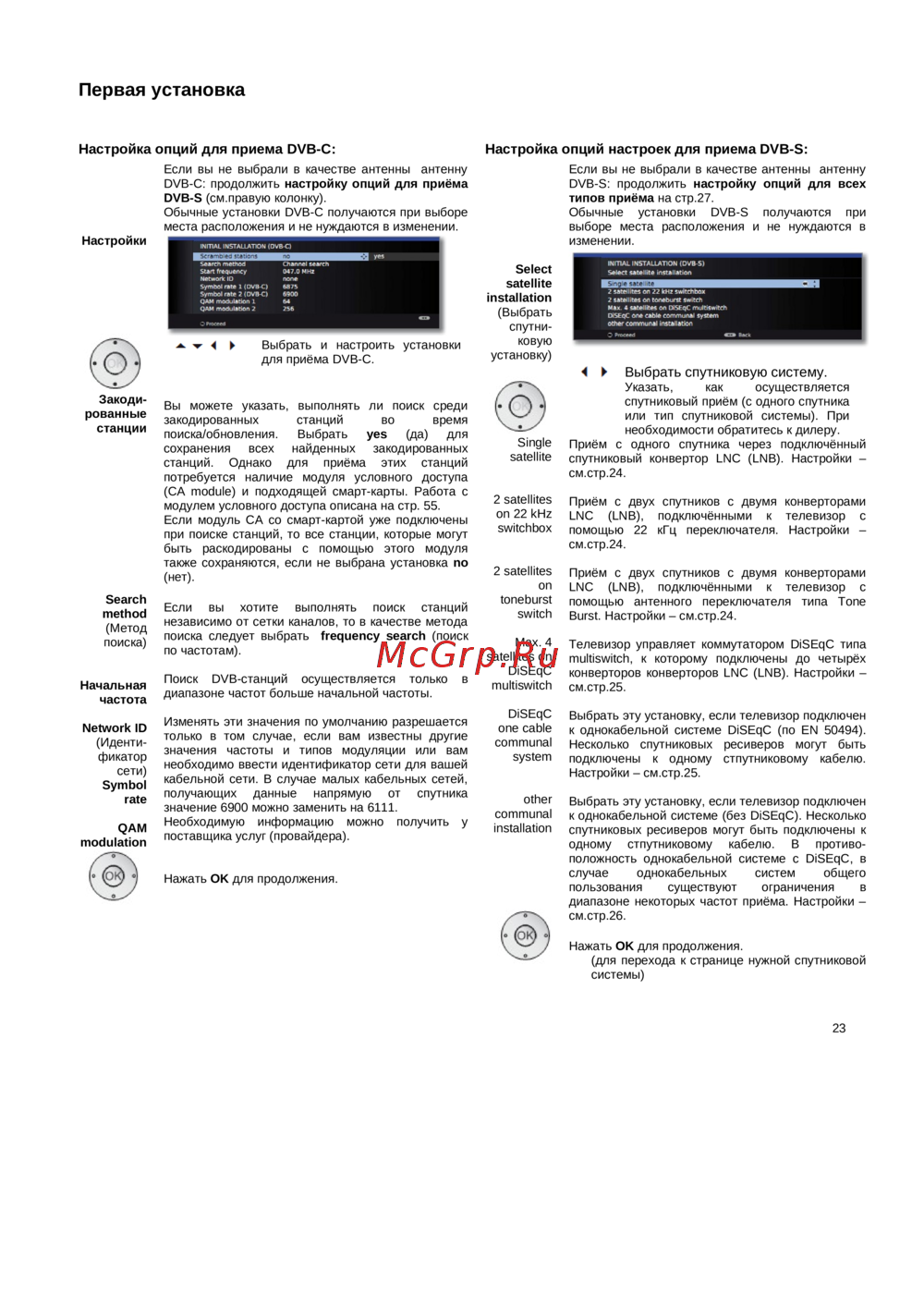 Настройка опций для приема DVB-C: Настройка опций настроек для приема DVB-S:
