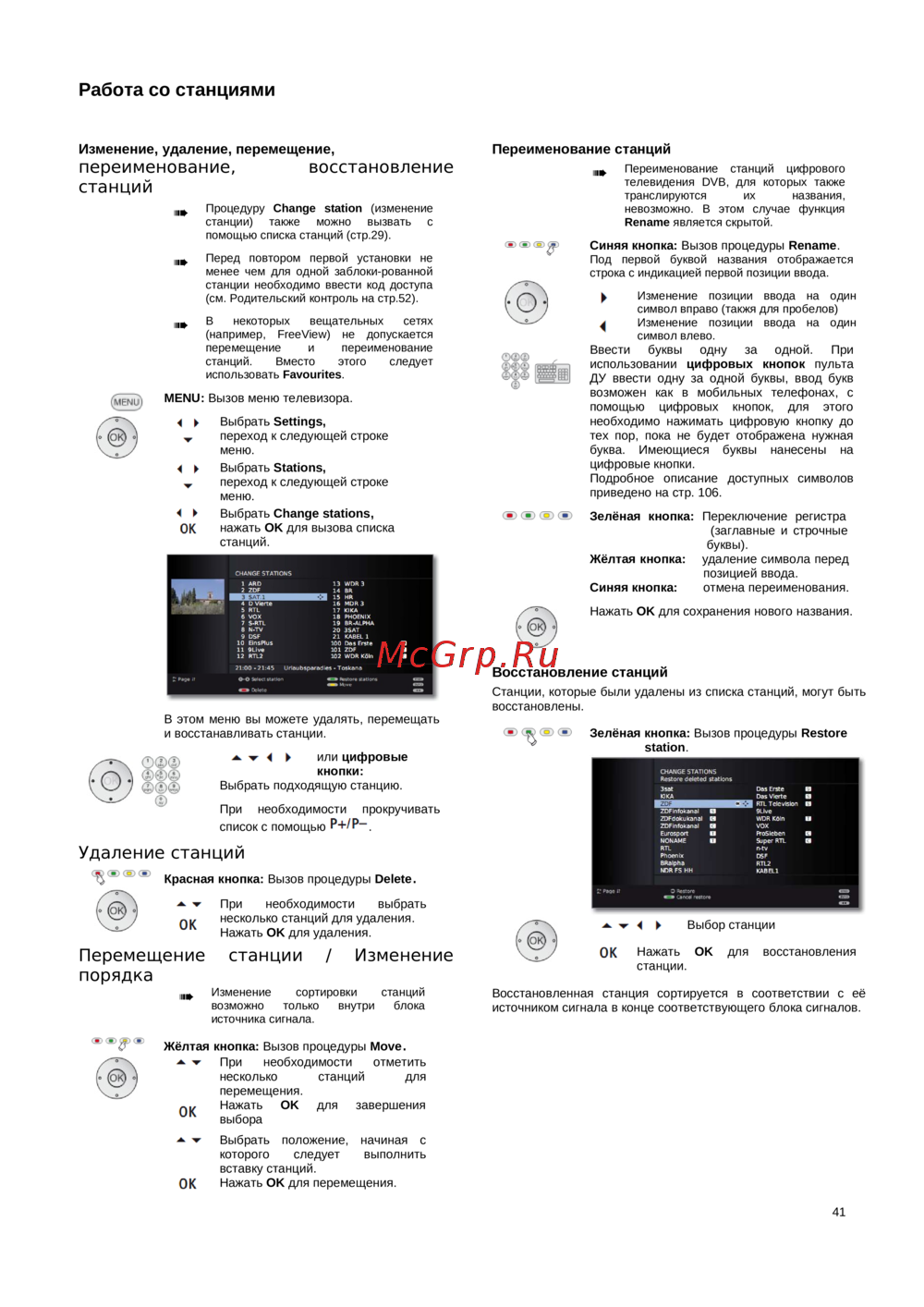 - Использование пульта ду для управления телевизором в режиме радио p.111