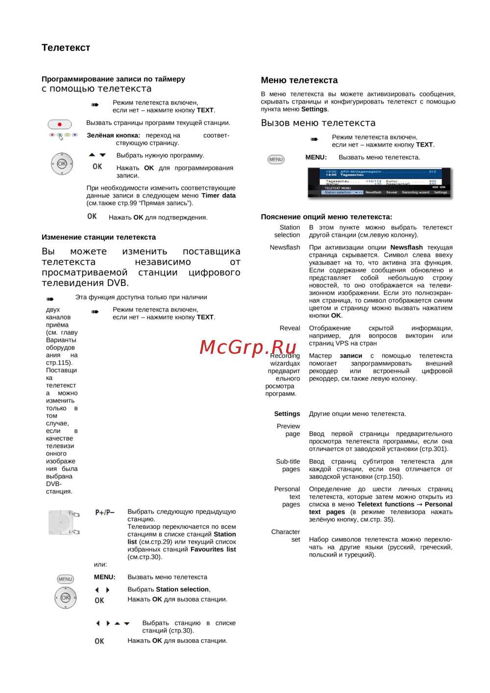 - Использование пульта ду для управления телевизором в режиме радио p.111