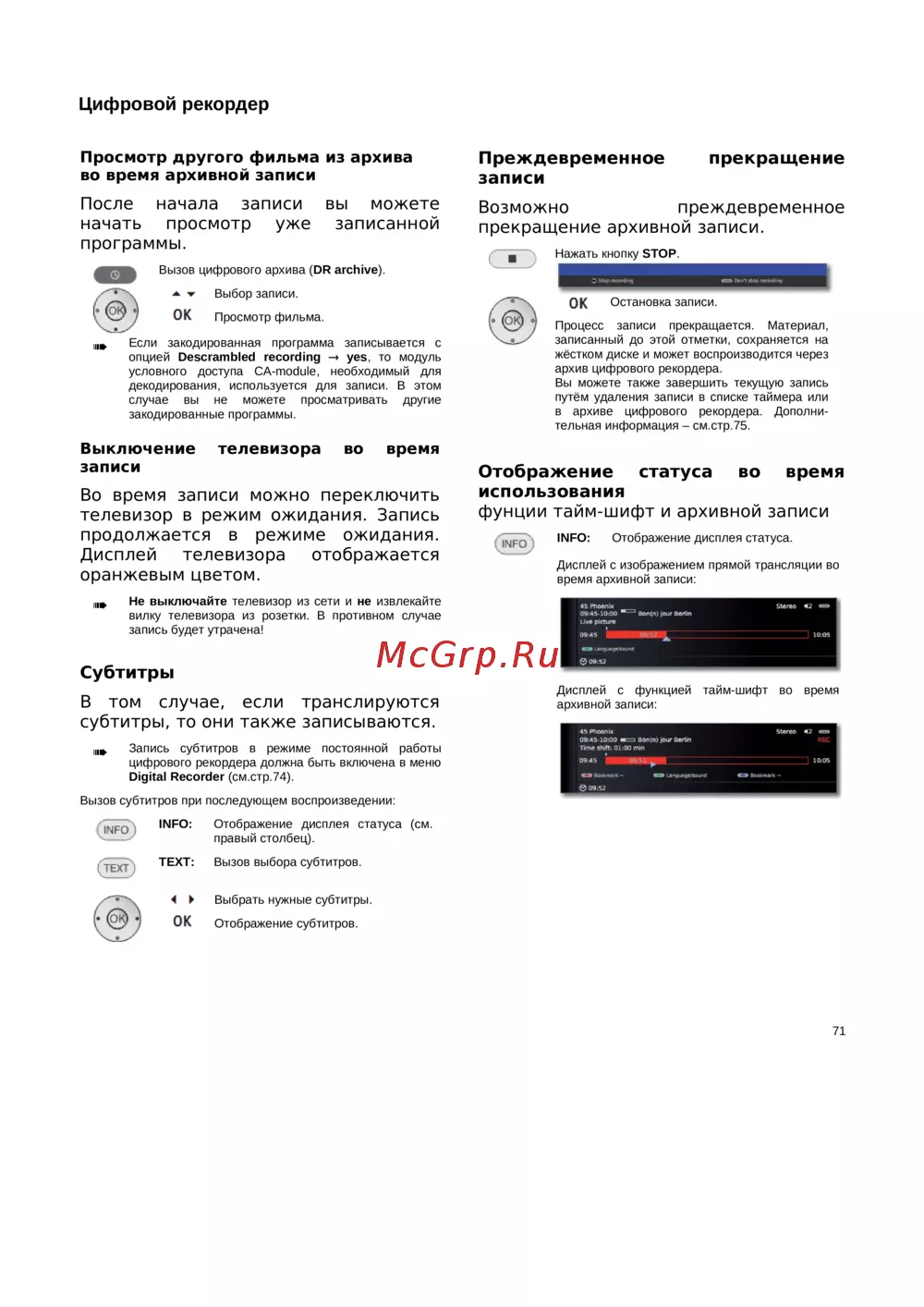 Узнайте, как использовать цифровой рекордер для записи и просмотра программ. Получите советы по настройке субтитров и управлению записями.