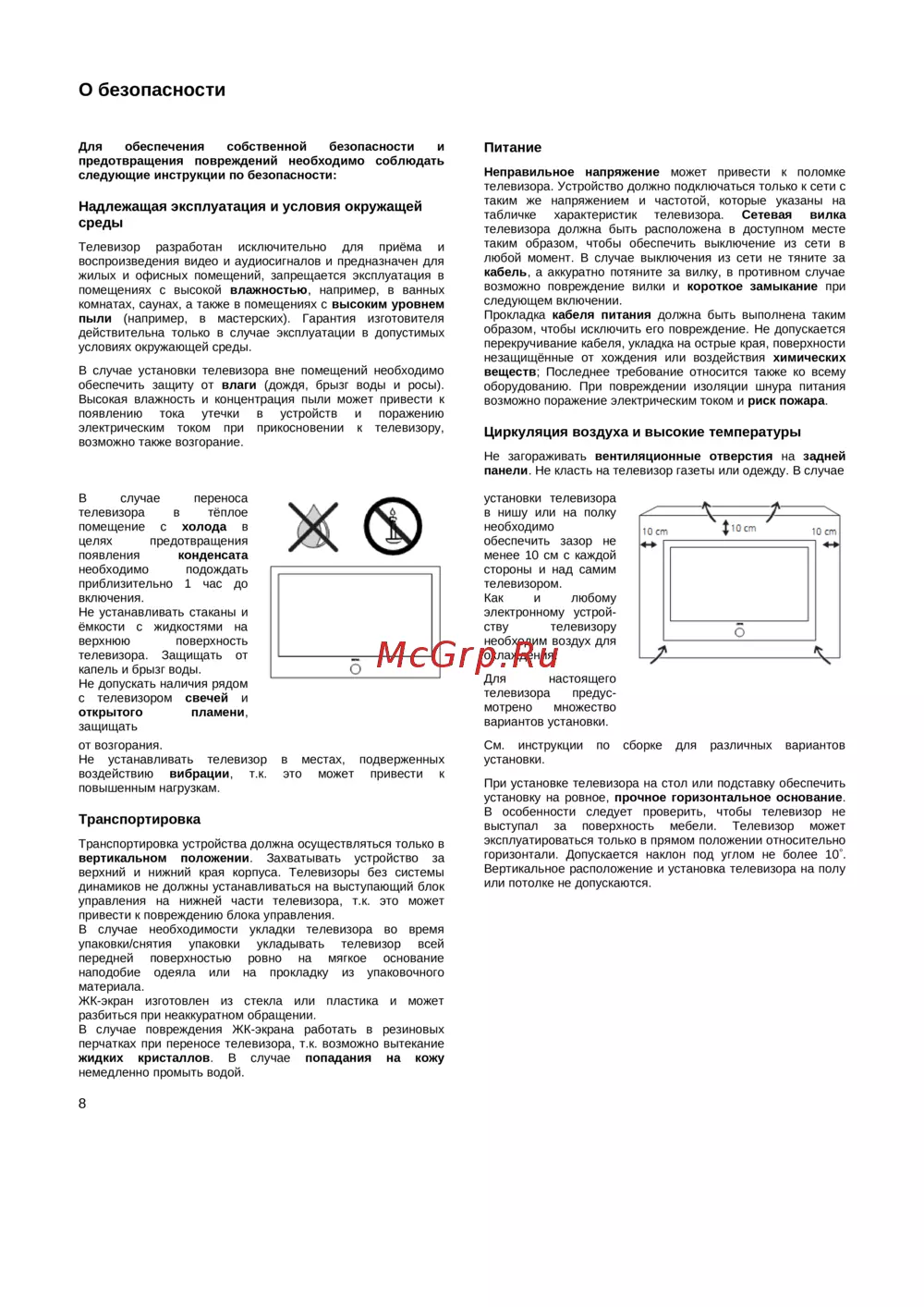 перчатках при переносе телевизора, т.к. возможно вытекание