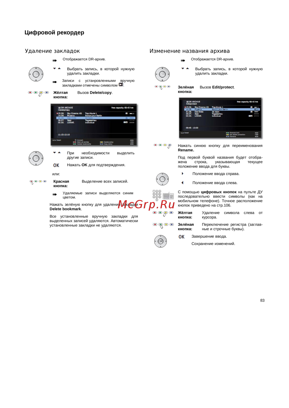 - Использование пульта ду для управления рекордером loewe p.111
