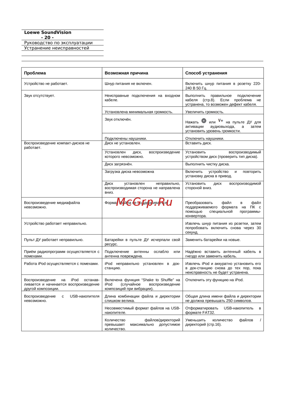 - Руководство по эксплуатации управление воспроизведение компакт дисков p.20