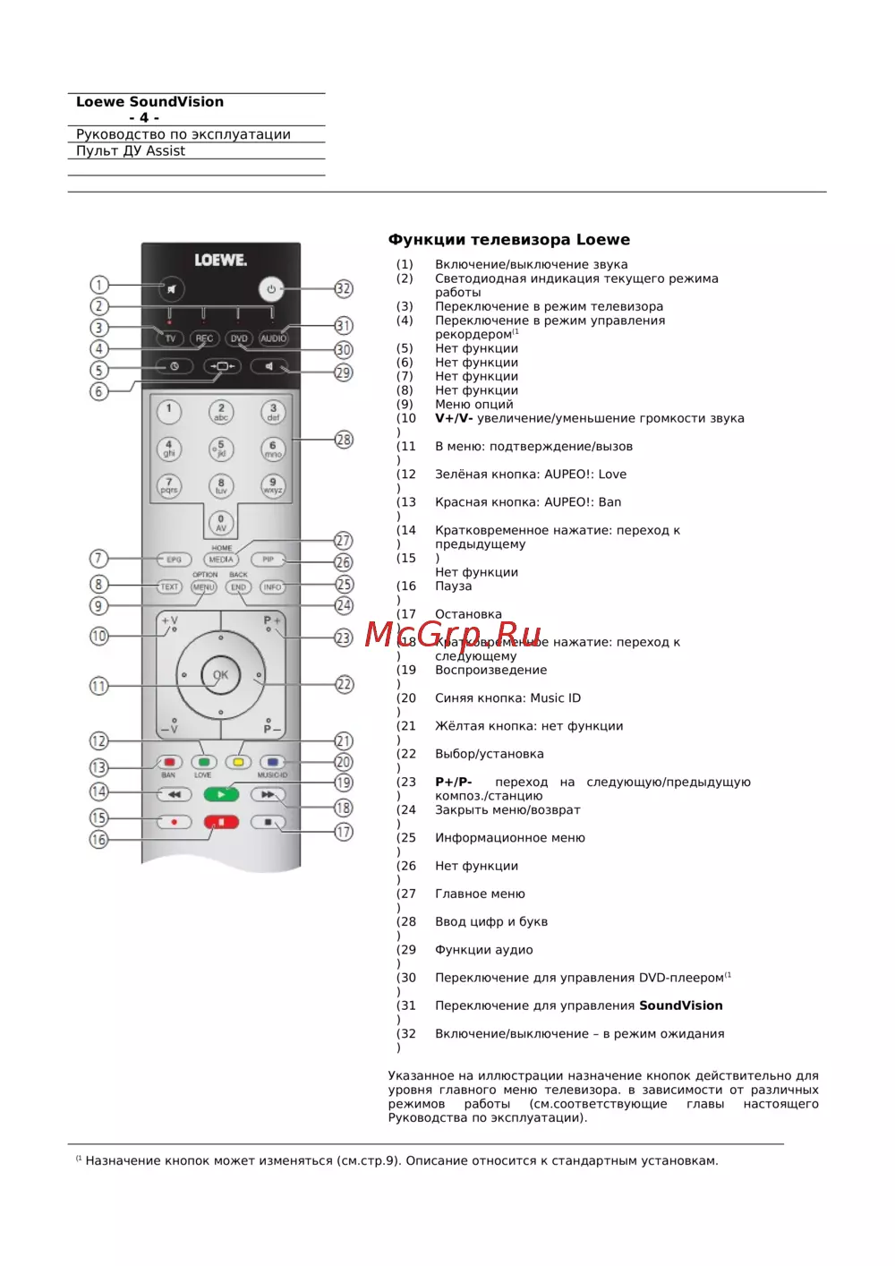 Назначение кнопок может изменяться (см.стр.9). Описание относится к стандартным установкам.