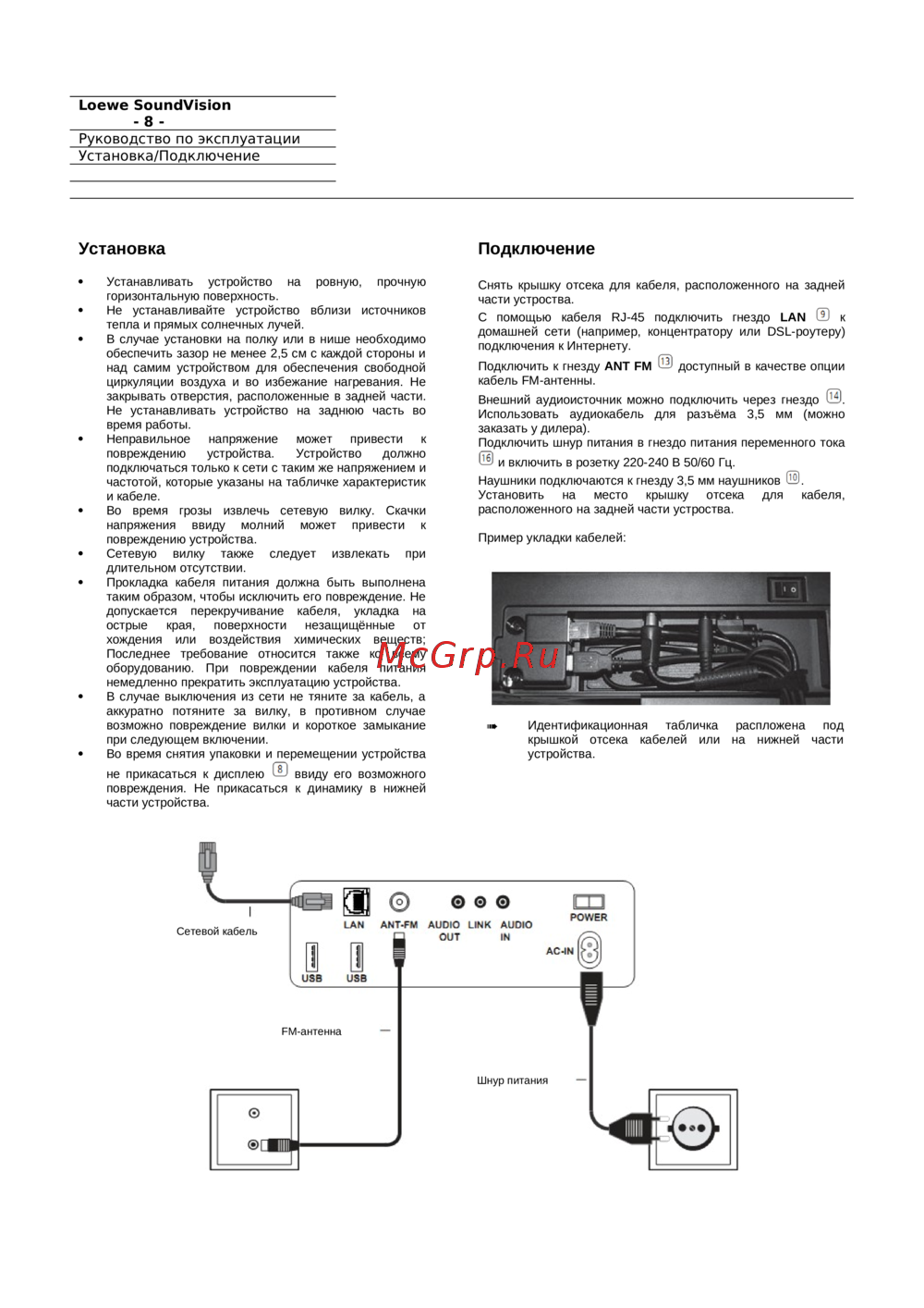 - Loewe soundvision обеспечивает удобный доступ к вашей медиатеке это устройство воспроизводит аудио компакт диски обеспечивает приём радиопрограмм с помощью антенны по кабелю или через интернет возможно воспроизведение цифровых музыкальных файлов с usb флэш накопителей и mp3 плееров аналогично тому как это осуществляется в различных устройствах apple p.8