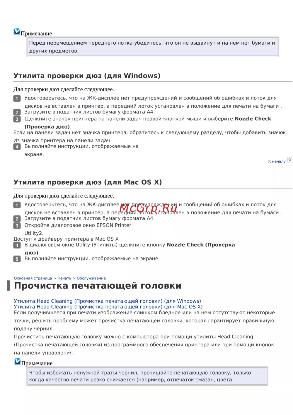 Чтобы избежать ненужной траты чернил, прочищайте печатающую головку, только