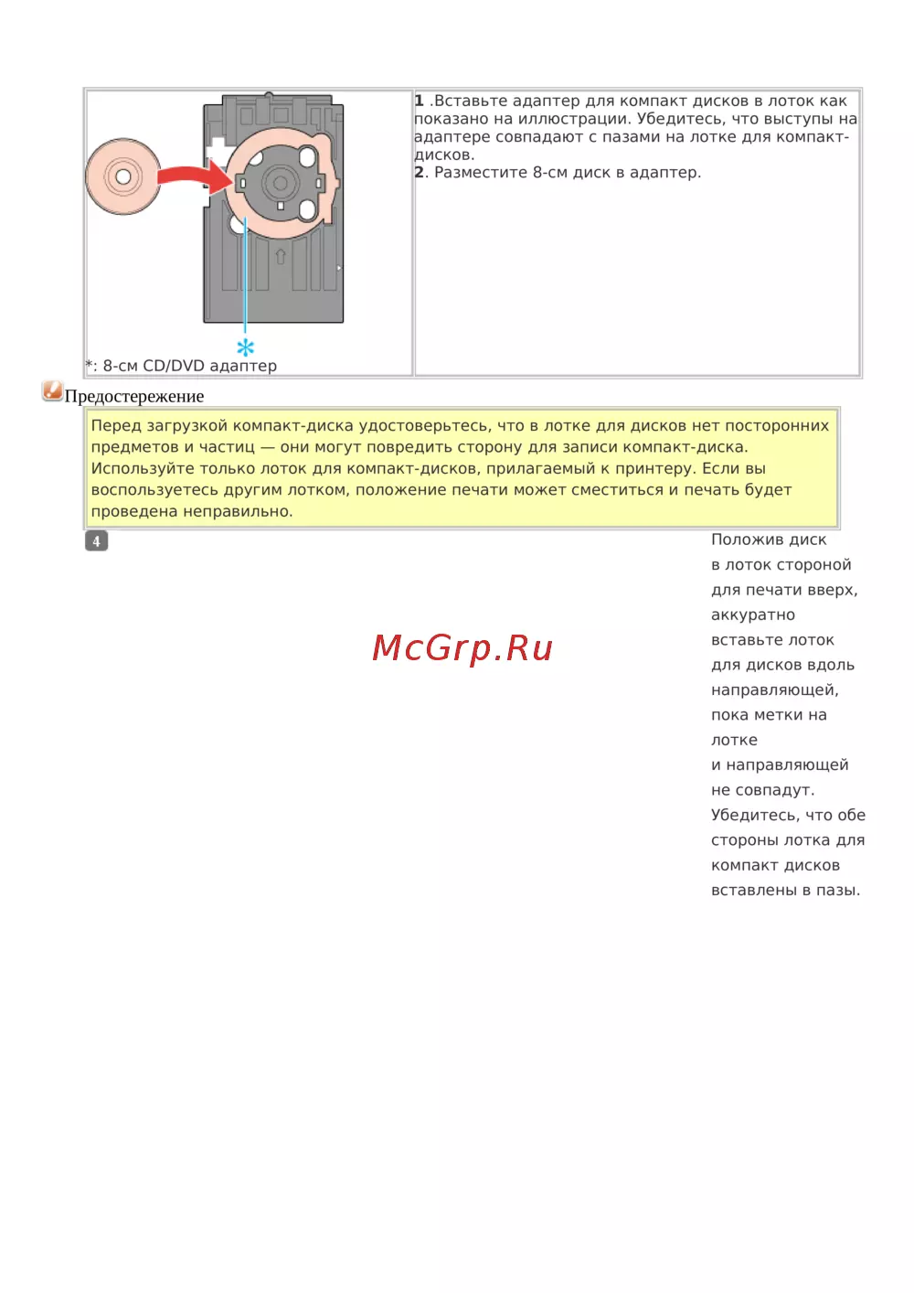 Используйте только лоток для компакт-дисков, прилагаемый кпринтеру. Есливы
