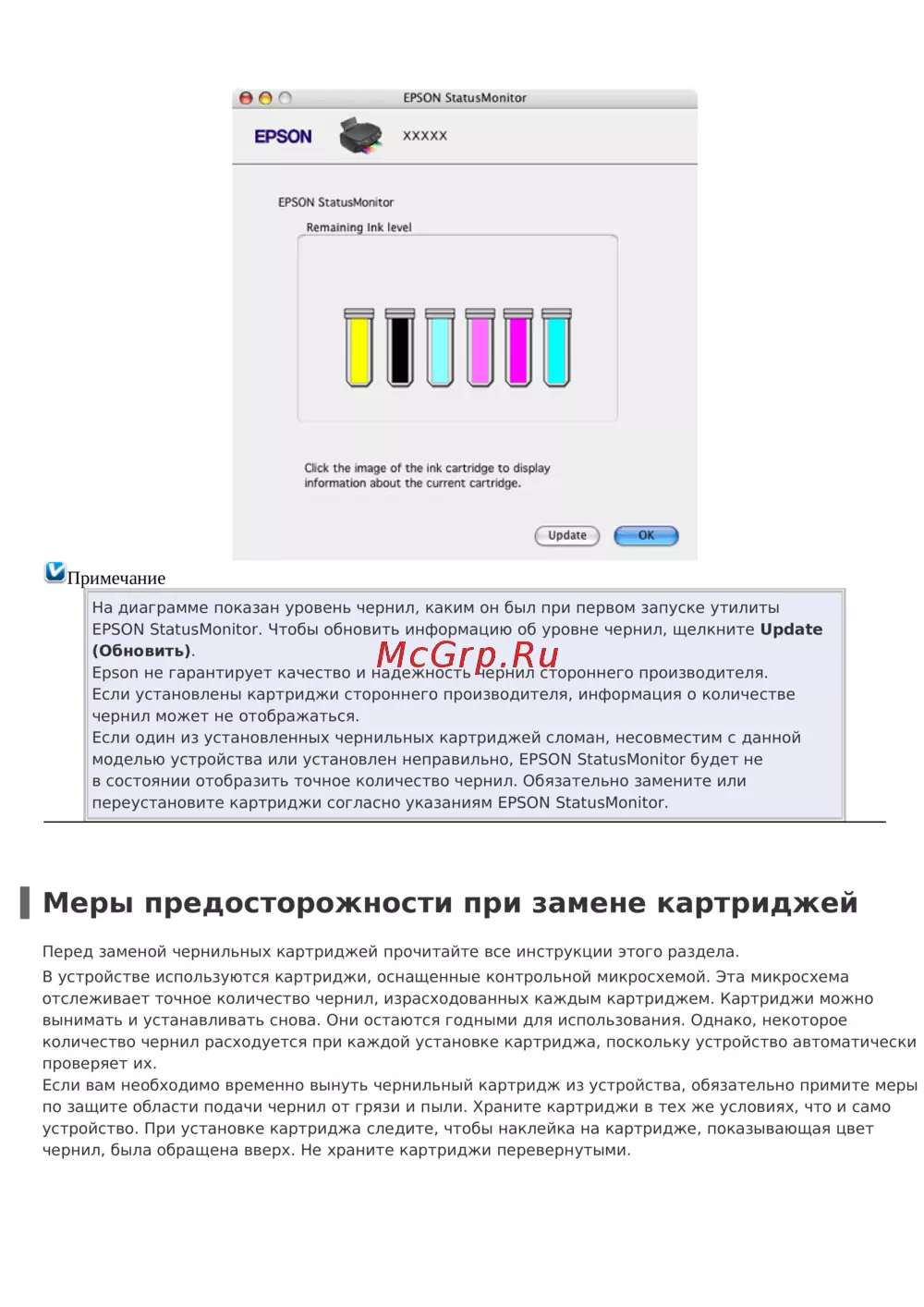 EPSONStatusMonitor. Чтобы обновить информацию обуровне чернил, щелкните Update