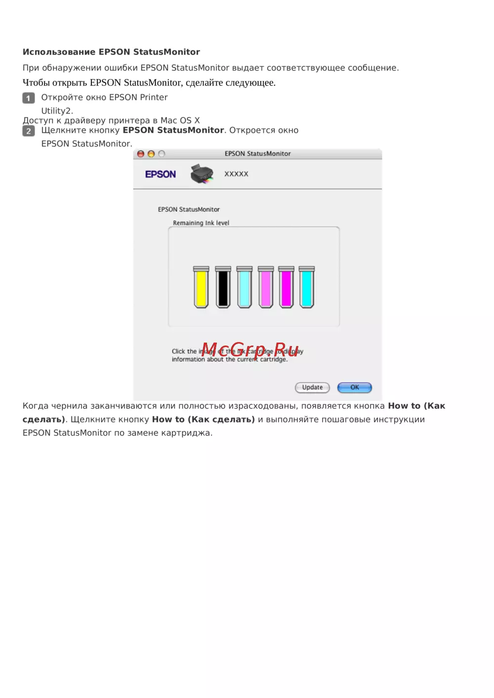 EPSONStatusMonitorпо замене картриджа.