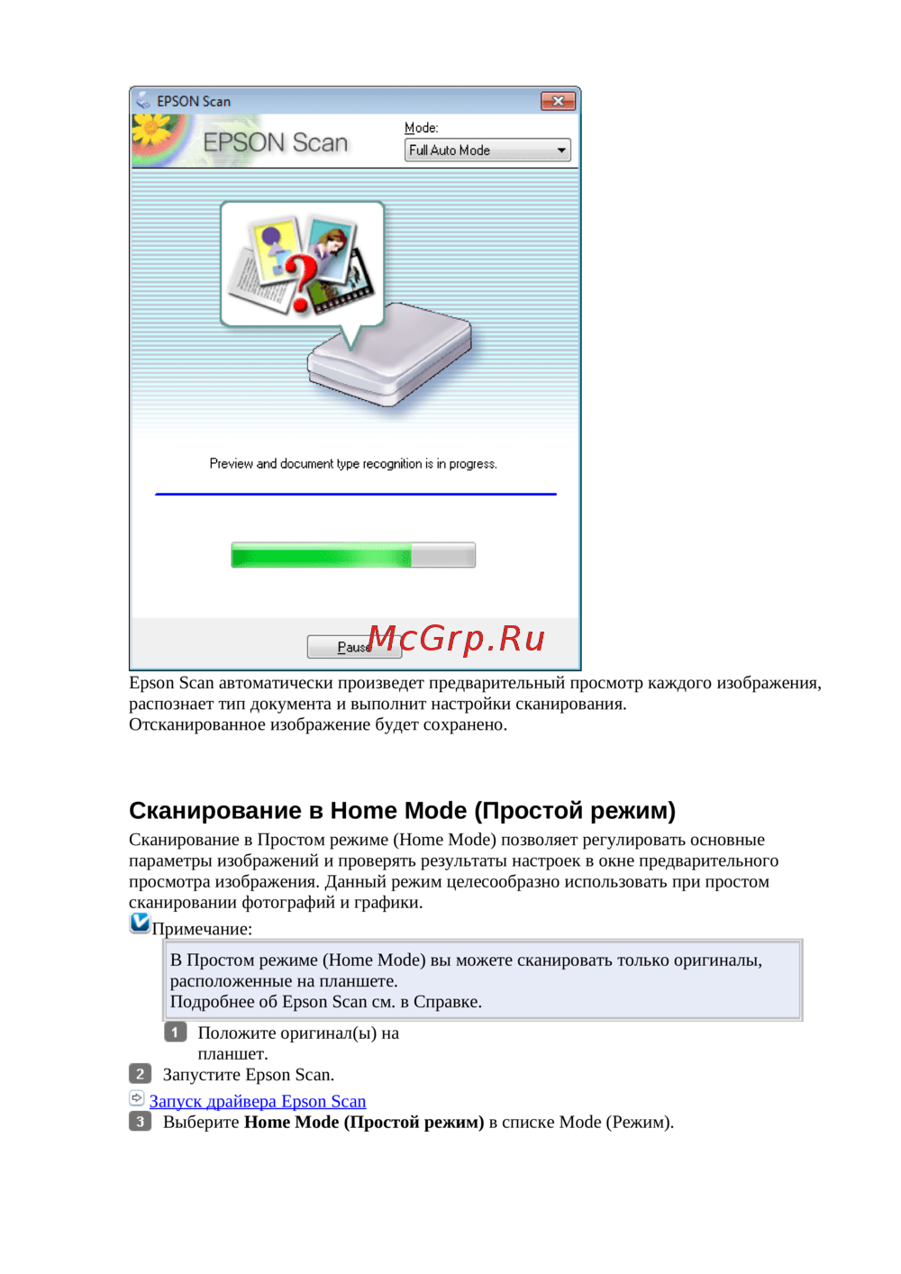 В Простом режиме (Home Mode) вы можете сканировать только оригиналы,