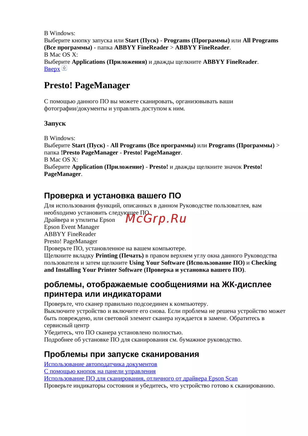 Подробнее об установке ПО для сканирования см. бумажное руководство.