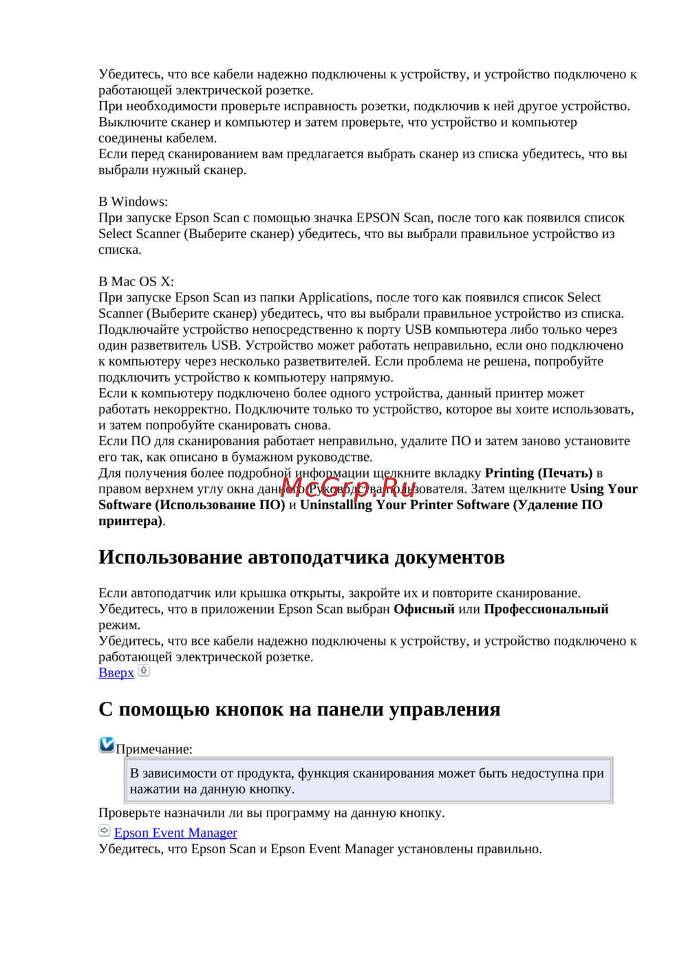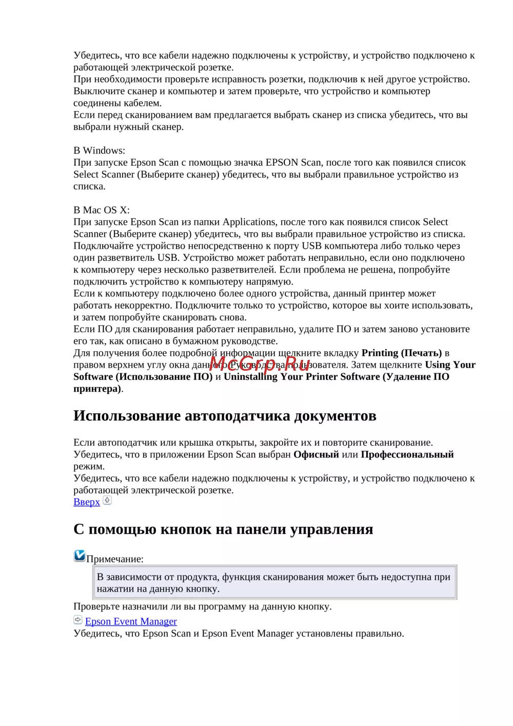Убедитесь, что Epson Scan и Epson Event Manager установлены правильно.