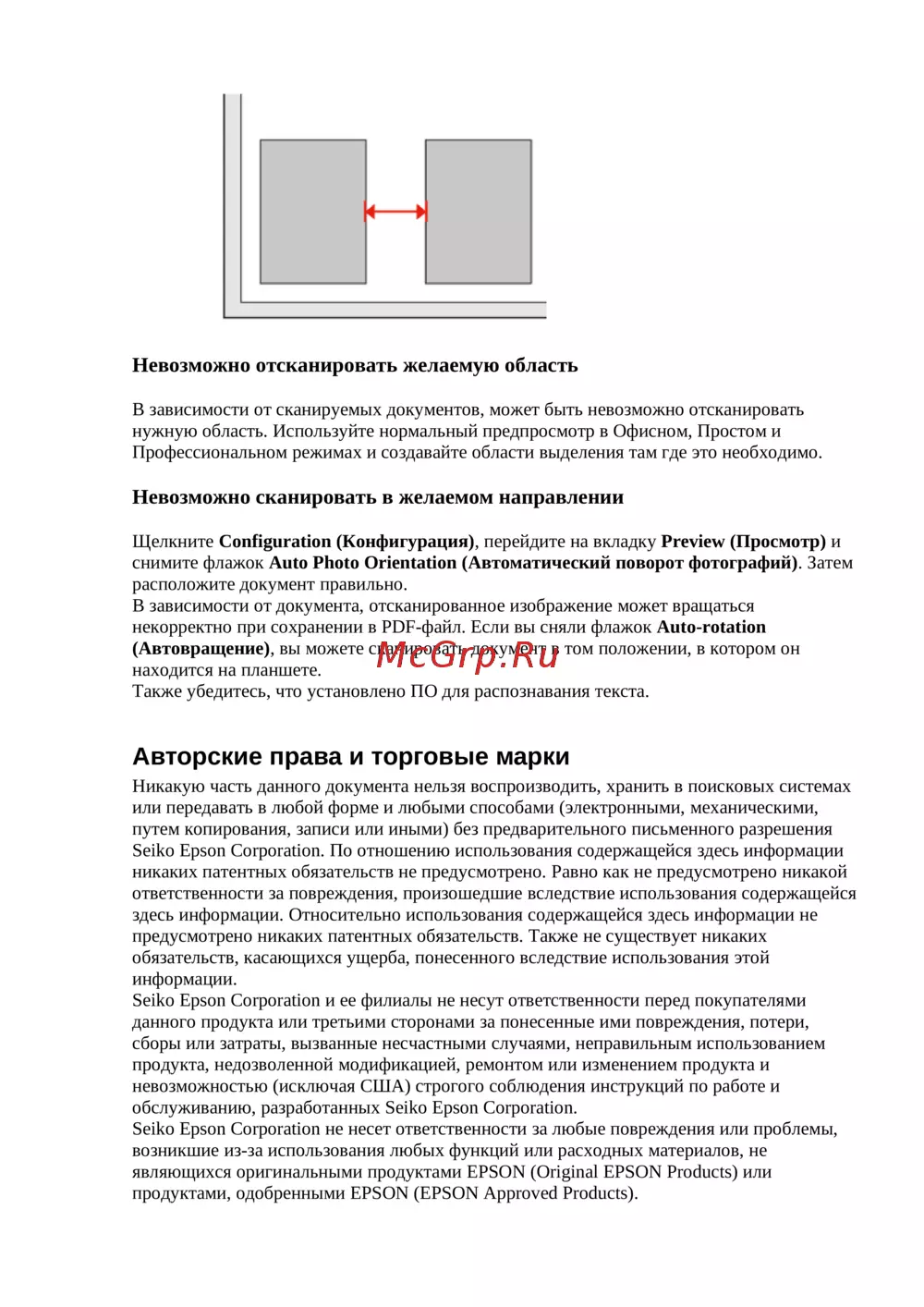 - Невозможно отсканировать желаемую область p.148