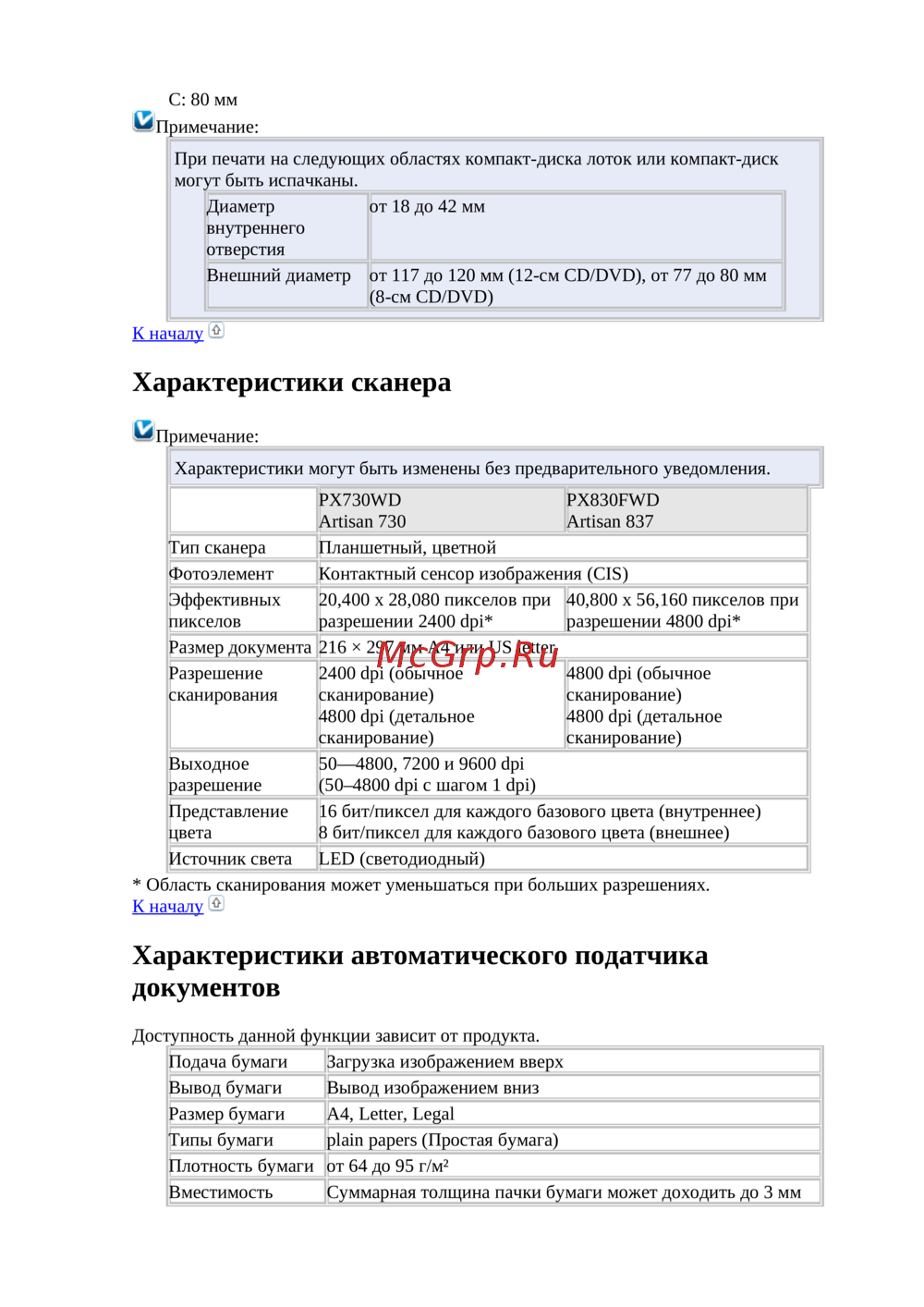 ![Epson PX730WD [166/174] Характеристики сканера](/views2/1841334/page166/bga6.png)