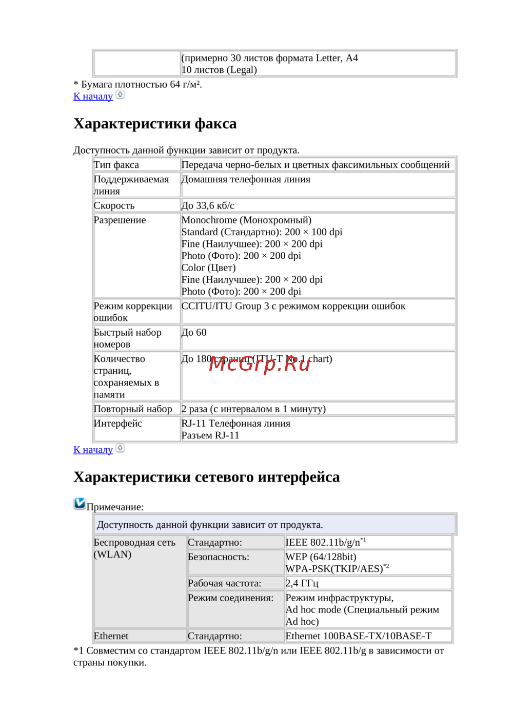 - Характеристики автоматического податчика документов p.166