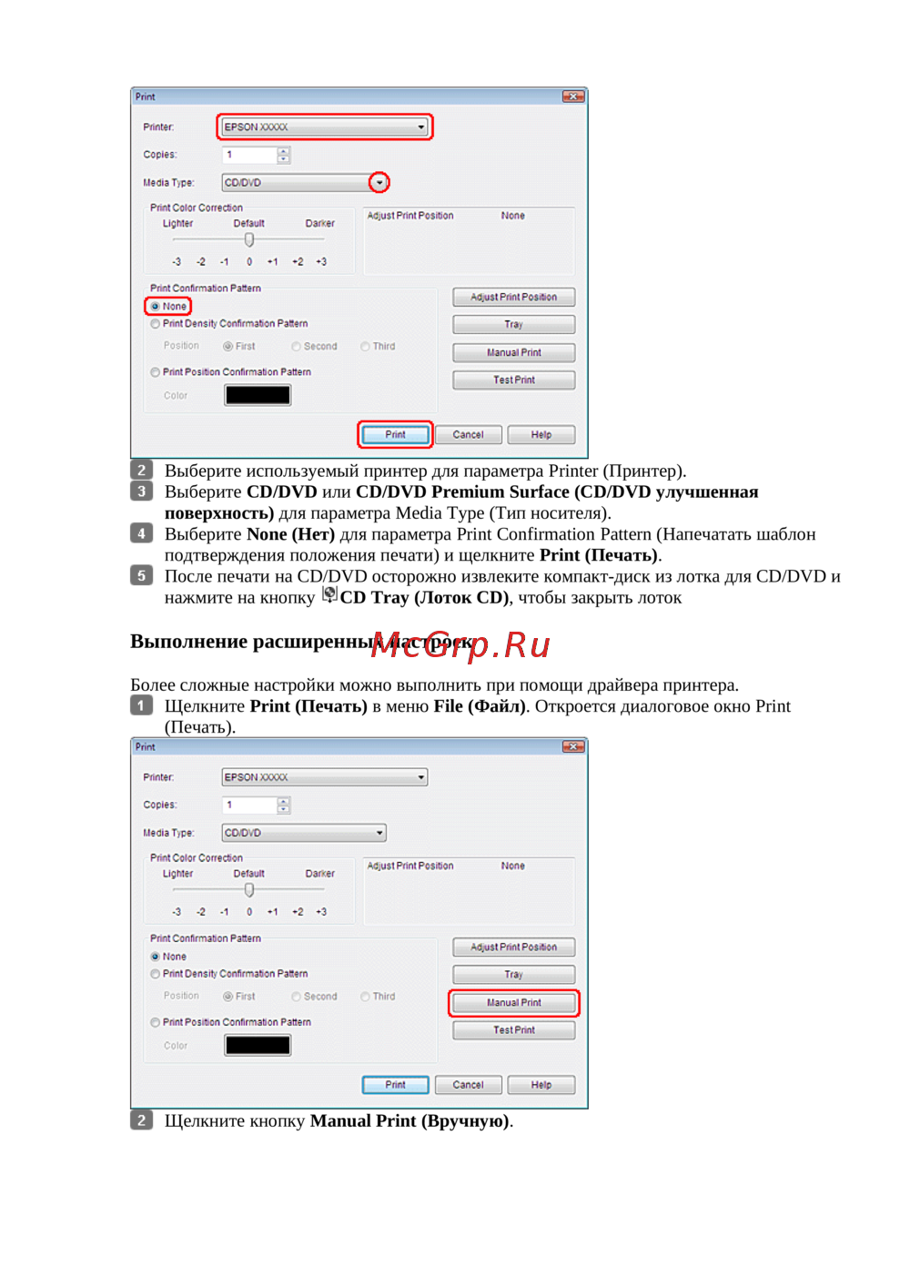 - Ручная стандартная двусторонняя печать только в windows p.46