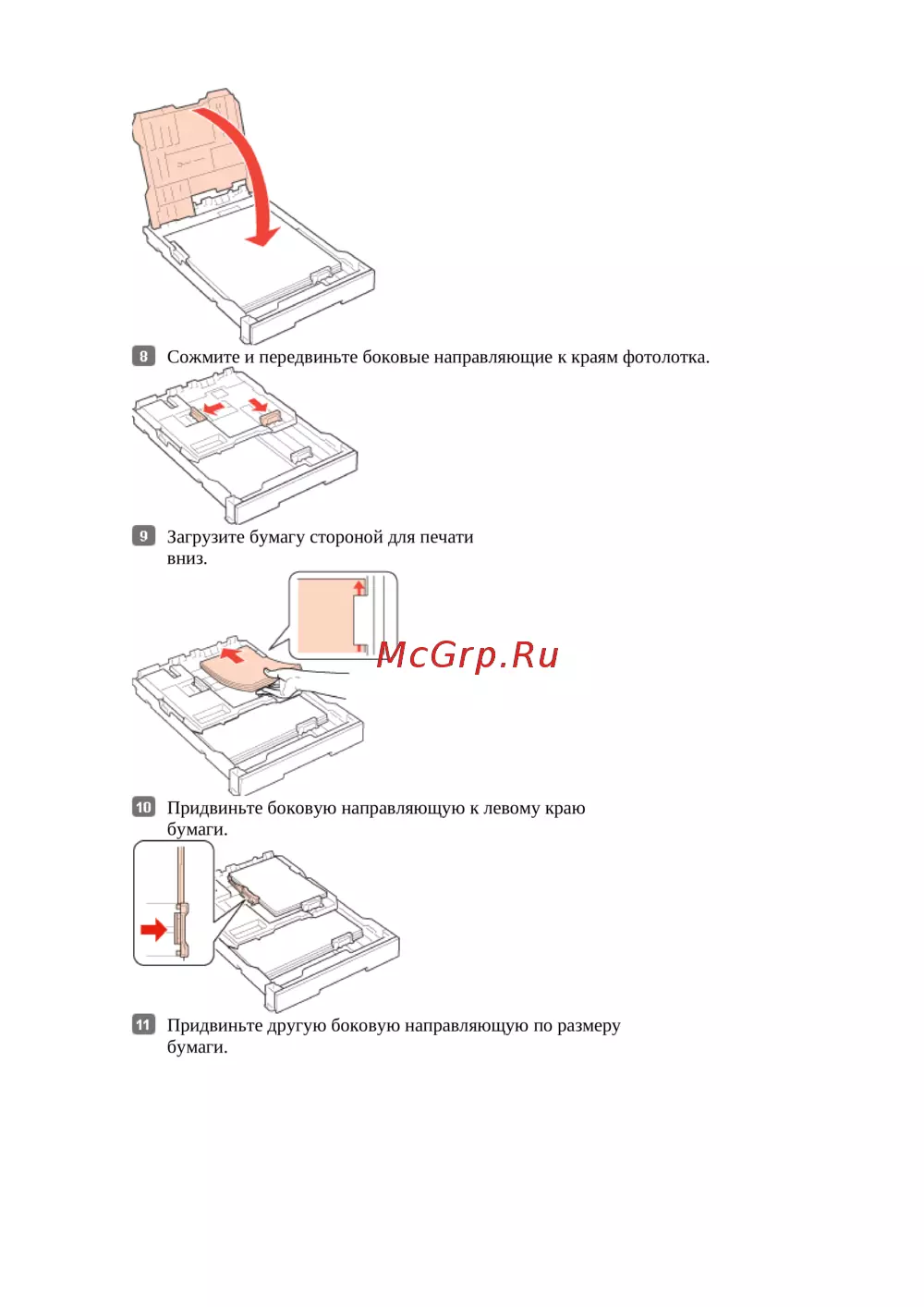 Сожмите и передвиньте боковые направляющие к краям фотолотка.