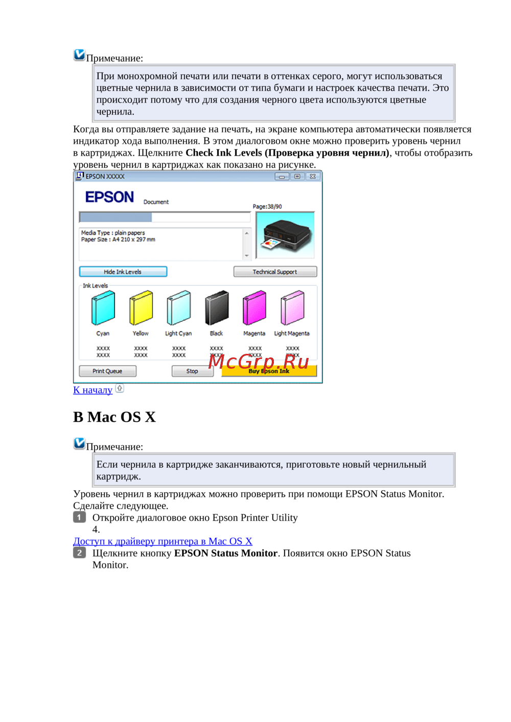 Уровень чернил в8картриджах можно проверить при помощи EPSON Status Monitor.