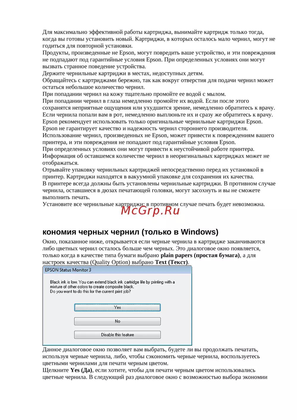 цветные чернила. В8следующий раз диалоговое окно с8возможностью выбора экономии