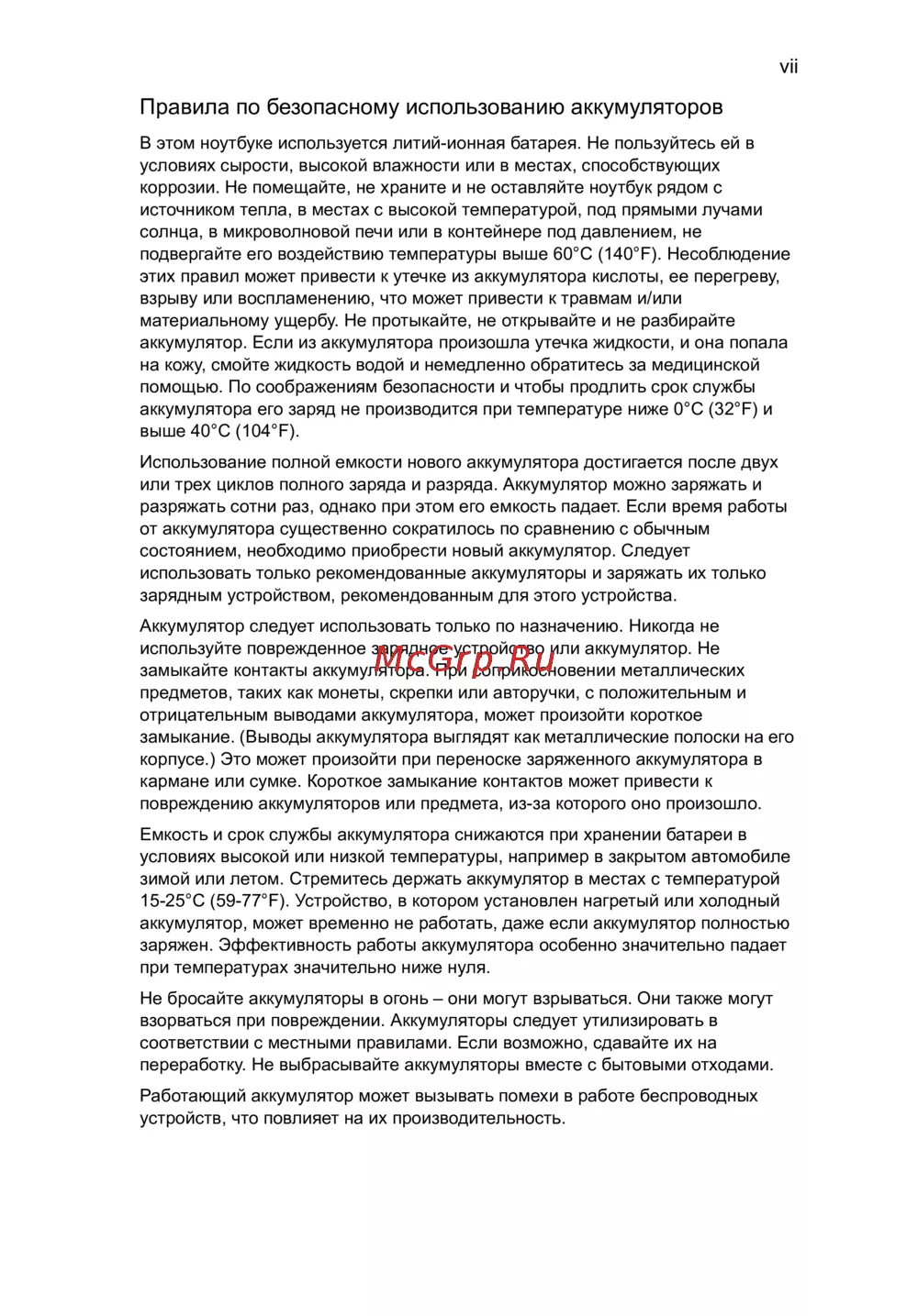 Acer AO725-C7Skk [7/69] Правила по безопасному использованию аккумуляторов