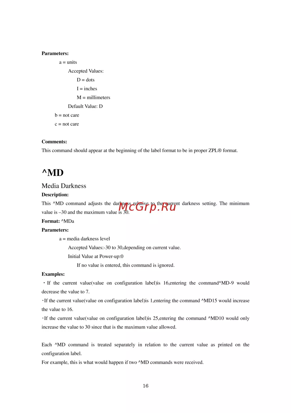 ・If the current value(value on configuration label)is 16,entering the command^MD-9 would