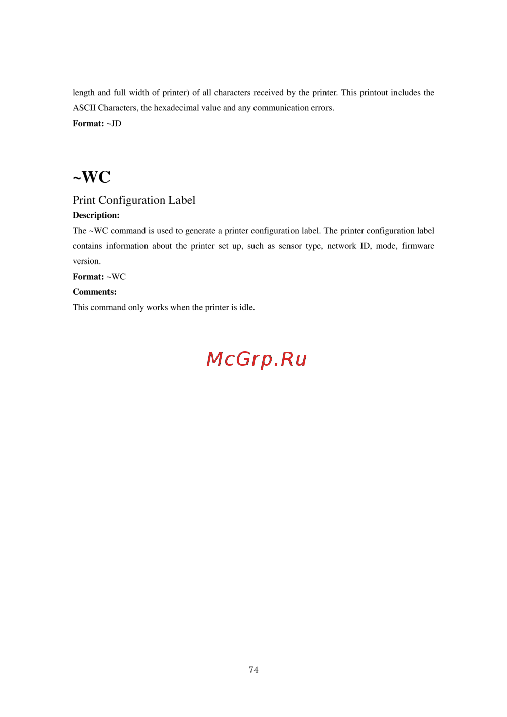 The ~WC command is used to generate a printer configuration label. The printer configuration label