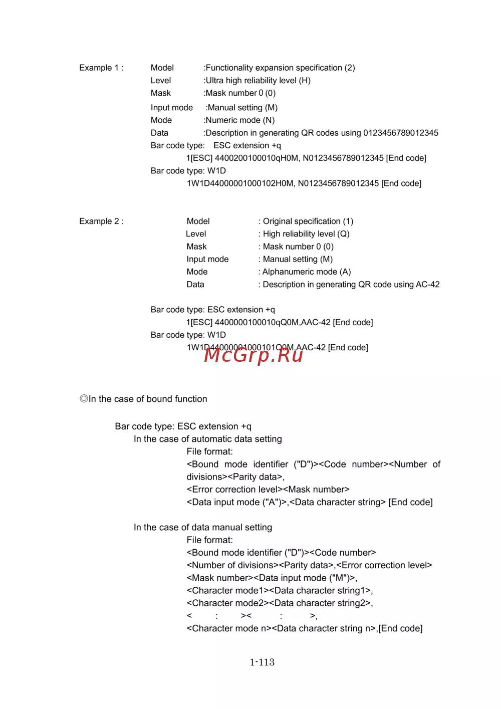 Bar code type: ESC extension +q