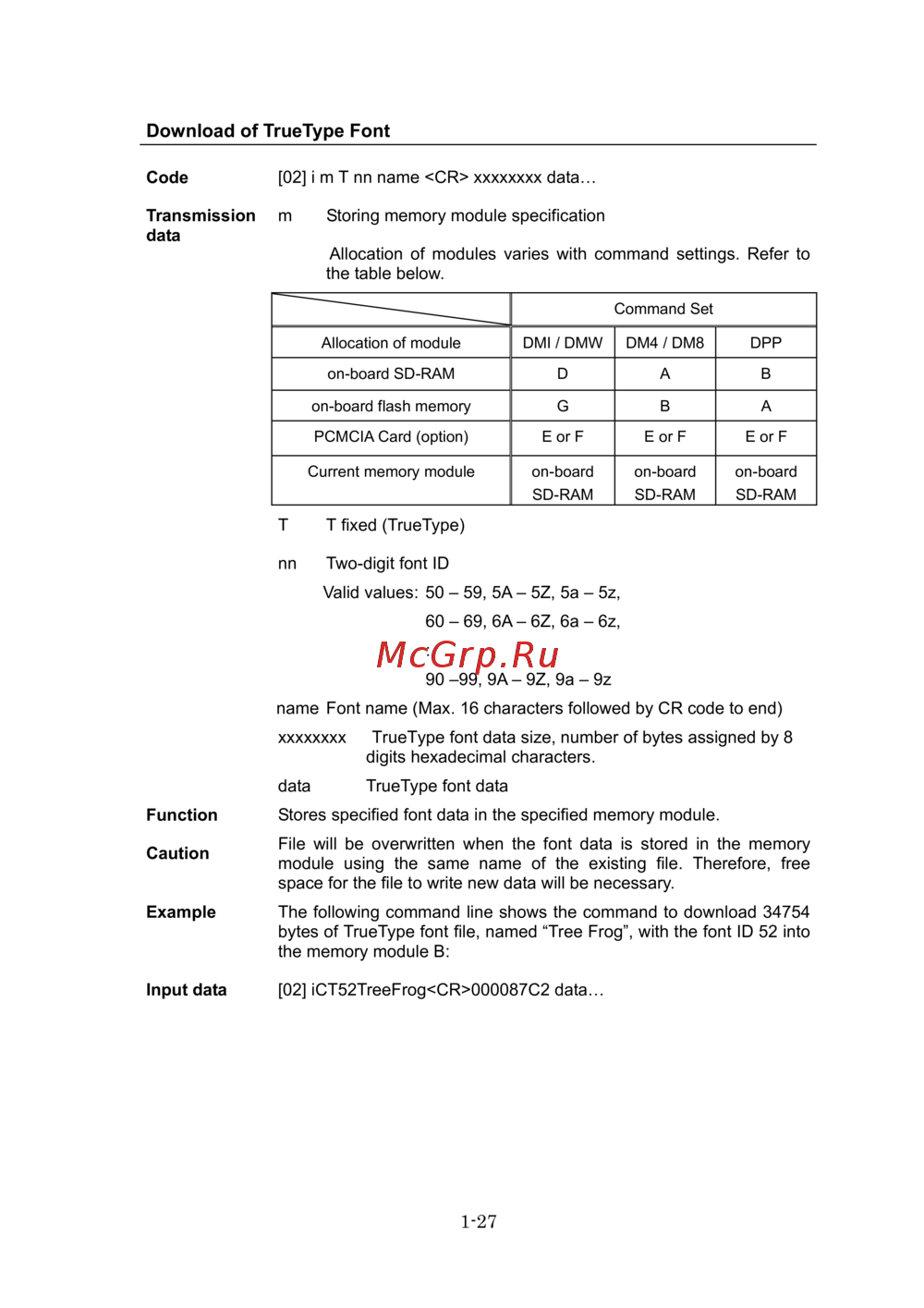 Citizen CL-E720 — загрузка и управление шрифтами TrueType в памяти устройства [28/154]