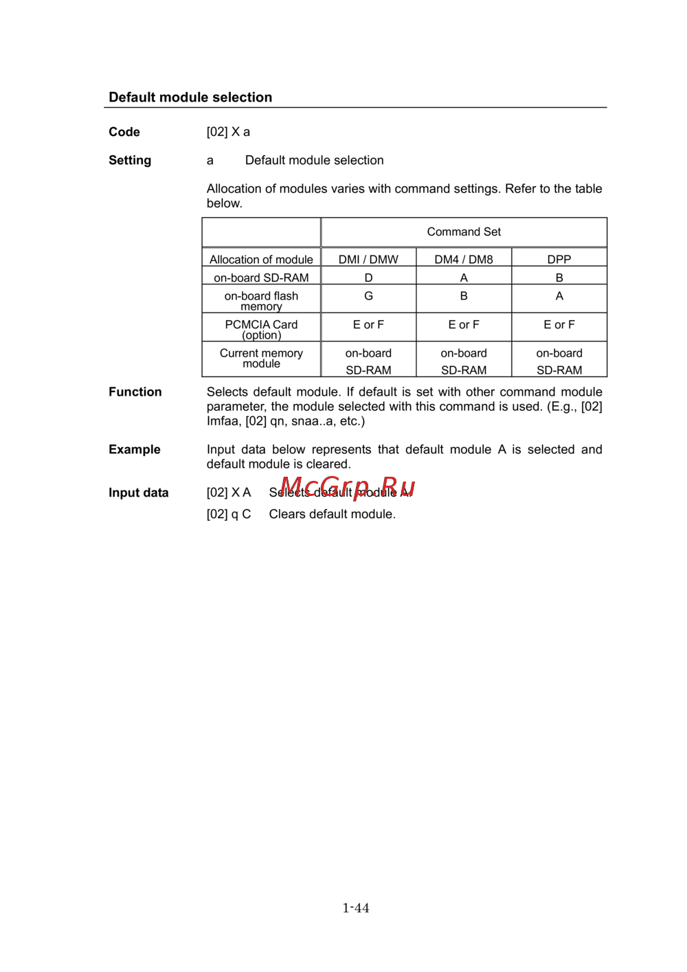 - Table below are items whose specifications will be changed using the switching function of the emulation command sets p.153