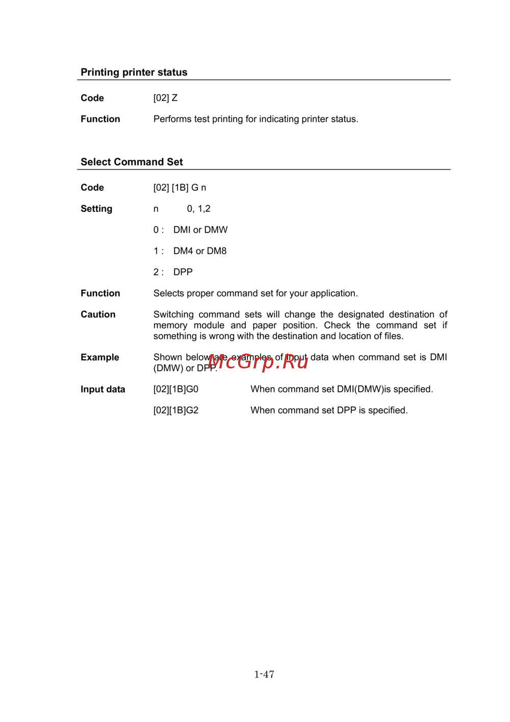 [02][1B]G0 When command set DMI(DMW)is specified.