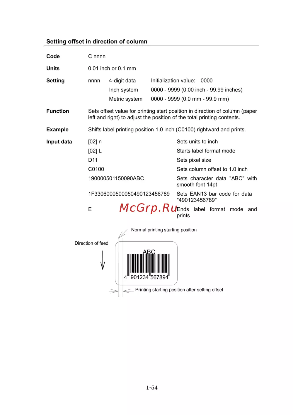 Citizen CL-E720 [55/154] Setting offset in direction of column