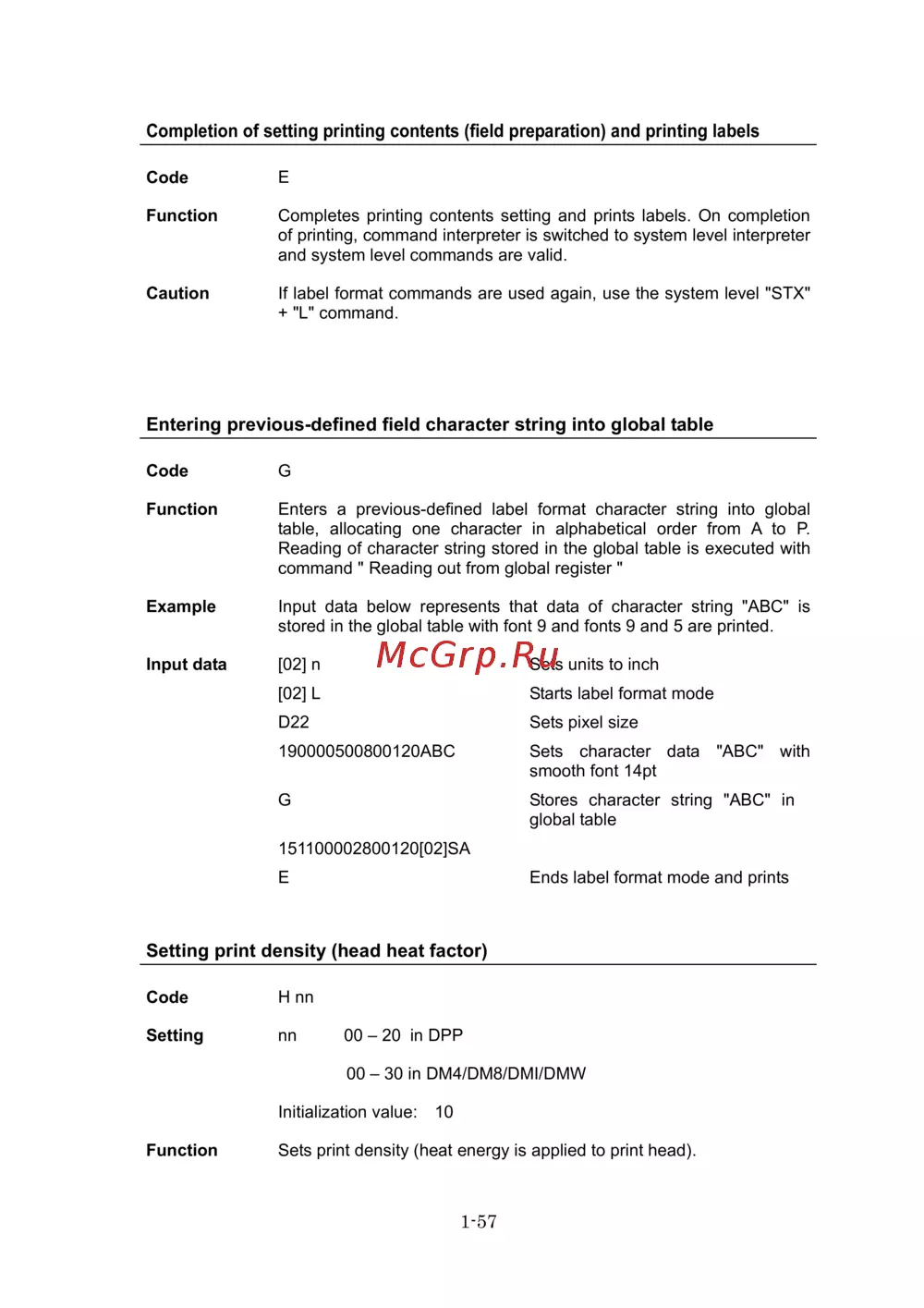 Узнайте, как завершить настройку печати, вводить строки символов и устанавливать плотность печати. Полезные команды и примеры для эффективного управления метками.