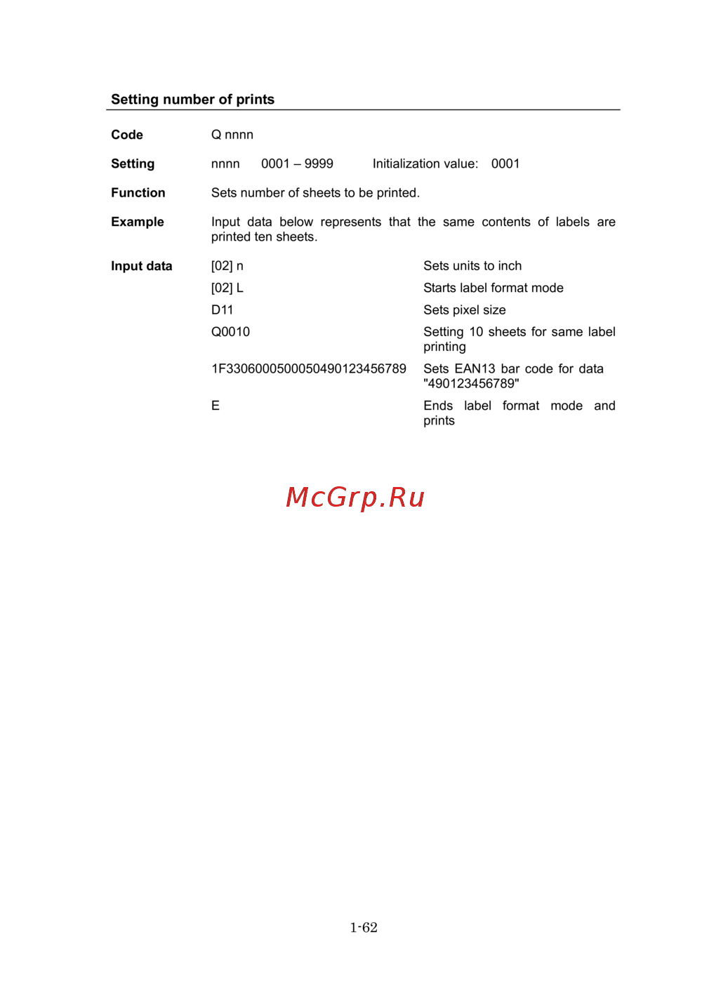 - Caution if value less than 0 inch 0050 is specified the initialization value will be set automatically with the initialization value set printing starts from the bottom of the label if the command is used after completing printing this command setting will not be effective to the first sheet of the label from the second sheet of the label this will be effective p.35
