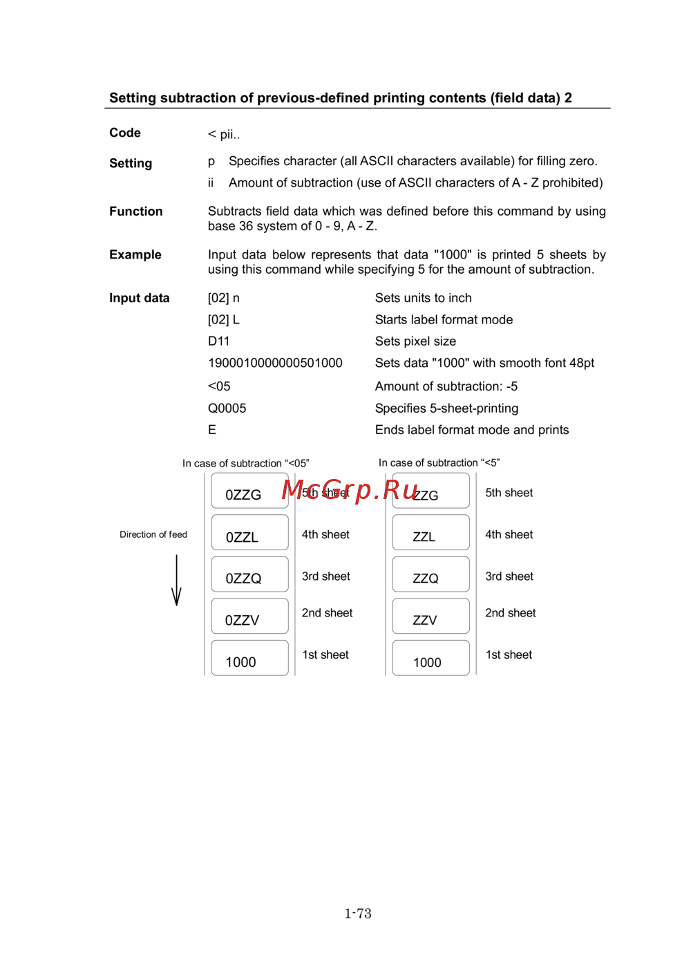 Узнайте, как настроить вычитание ранее определенных данных печати с помощью команды. Подробные примеры и инструкции по использованию ASCII символов.