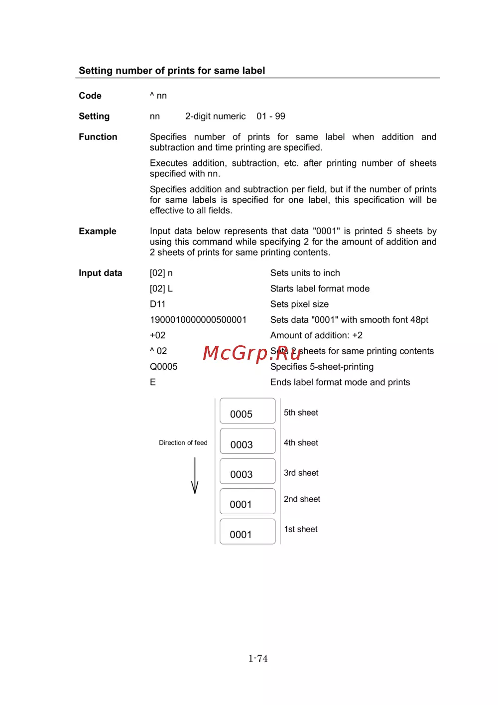 Q0005 Specifies 5-sheet-printing