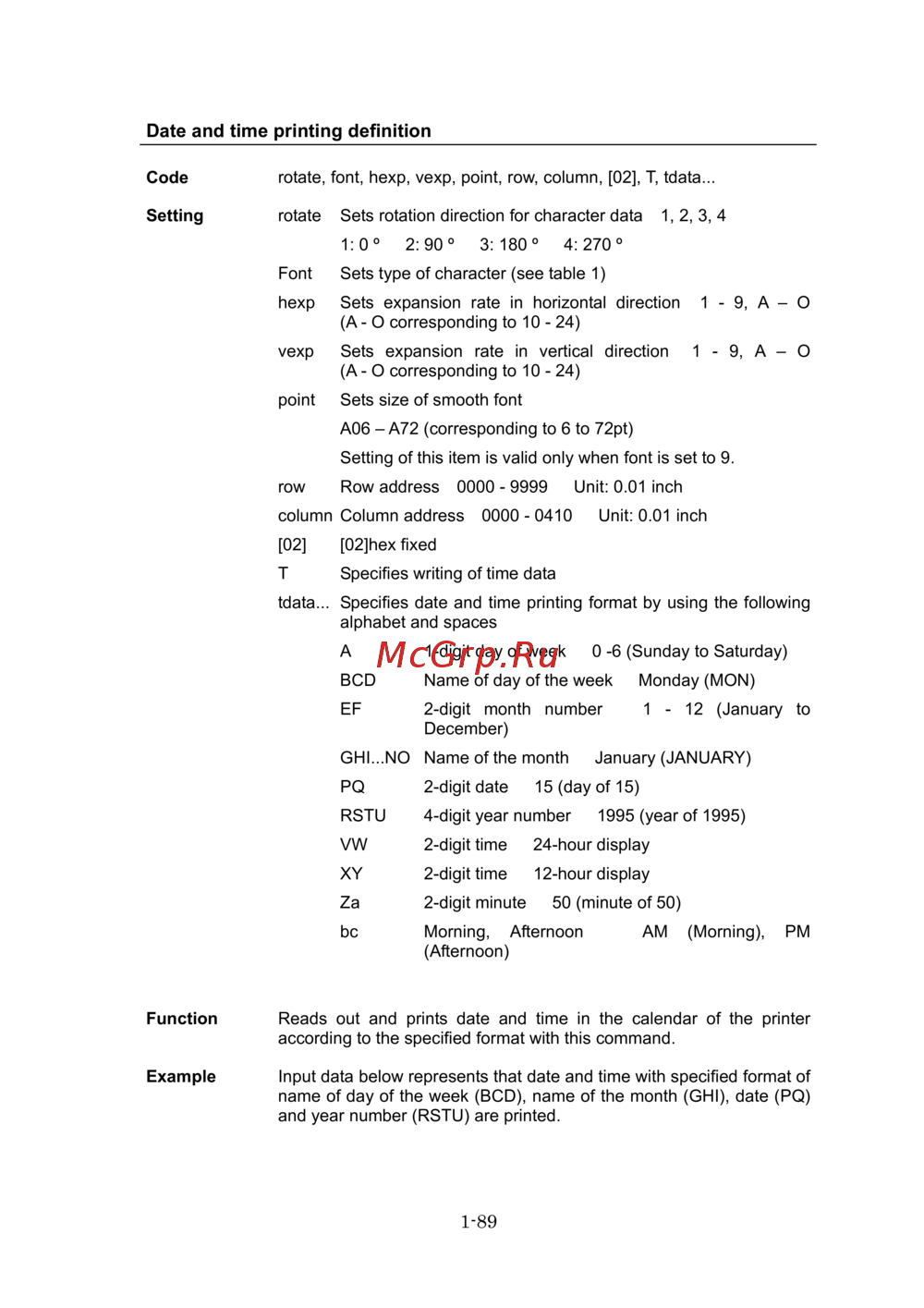 tdata... Specifies date and time printing format by using the following