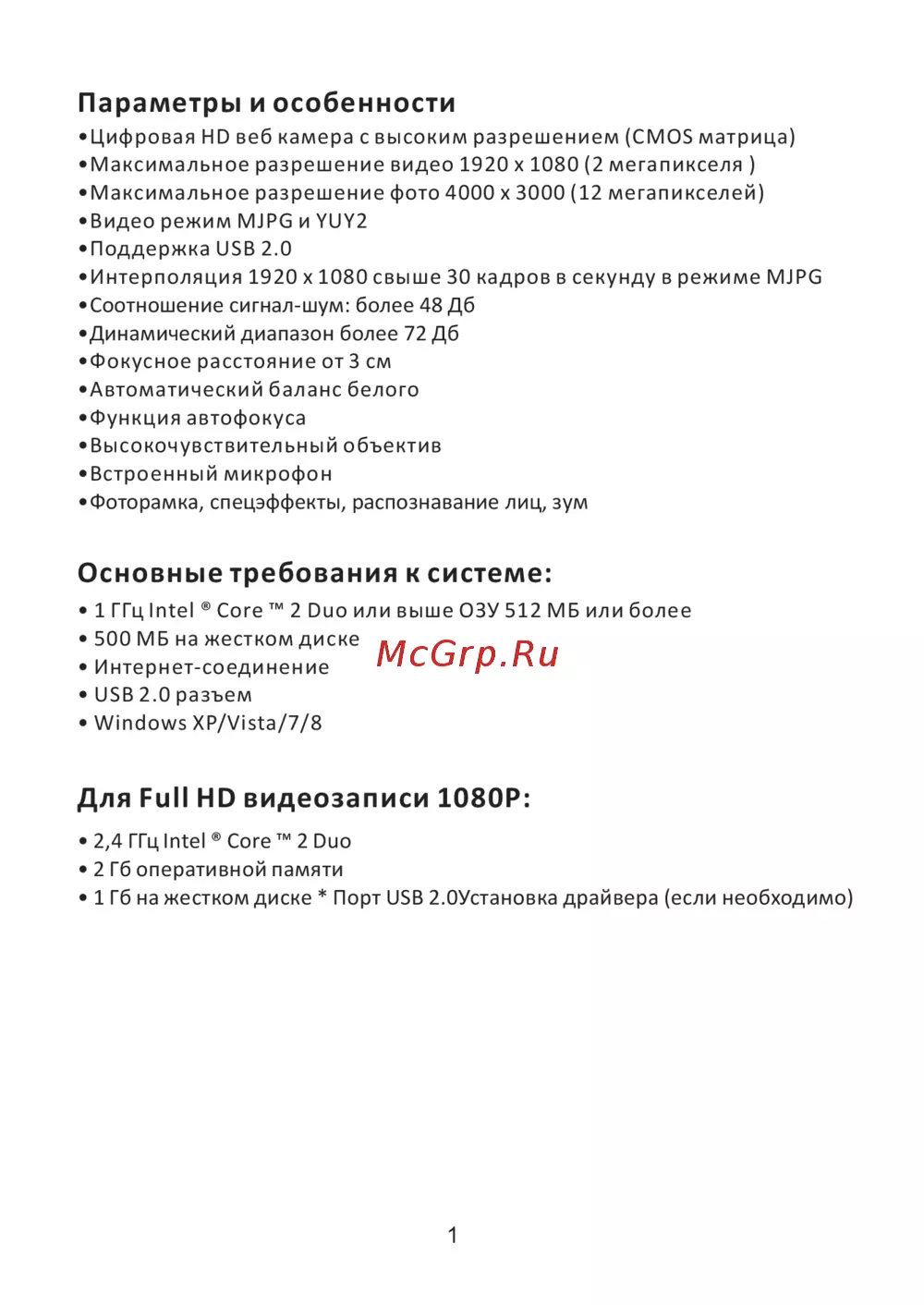 •Интерполяция 1920 х 1080 свыше 30 кадров в секунду в режиме MJPG