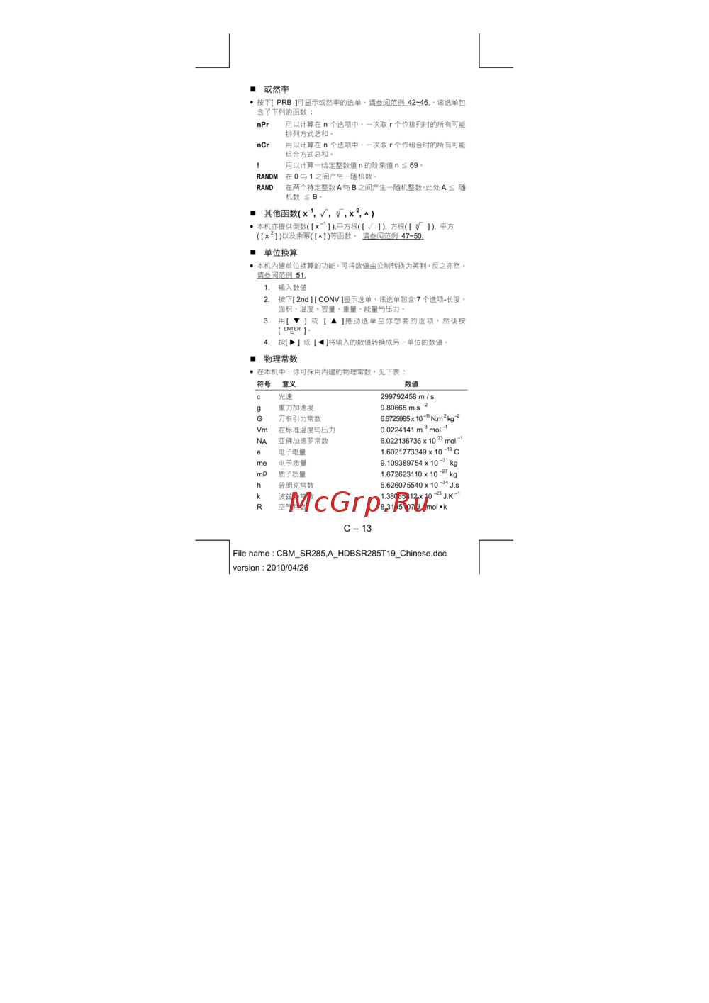 在本機中,你可採用內建的物理常數,見下表