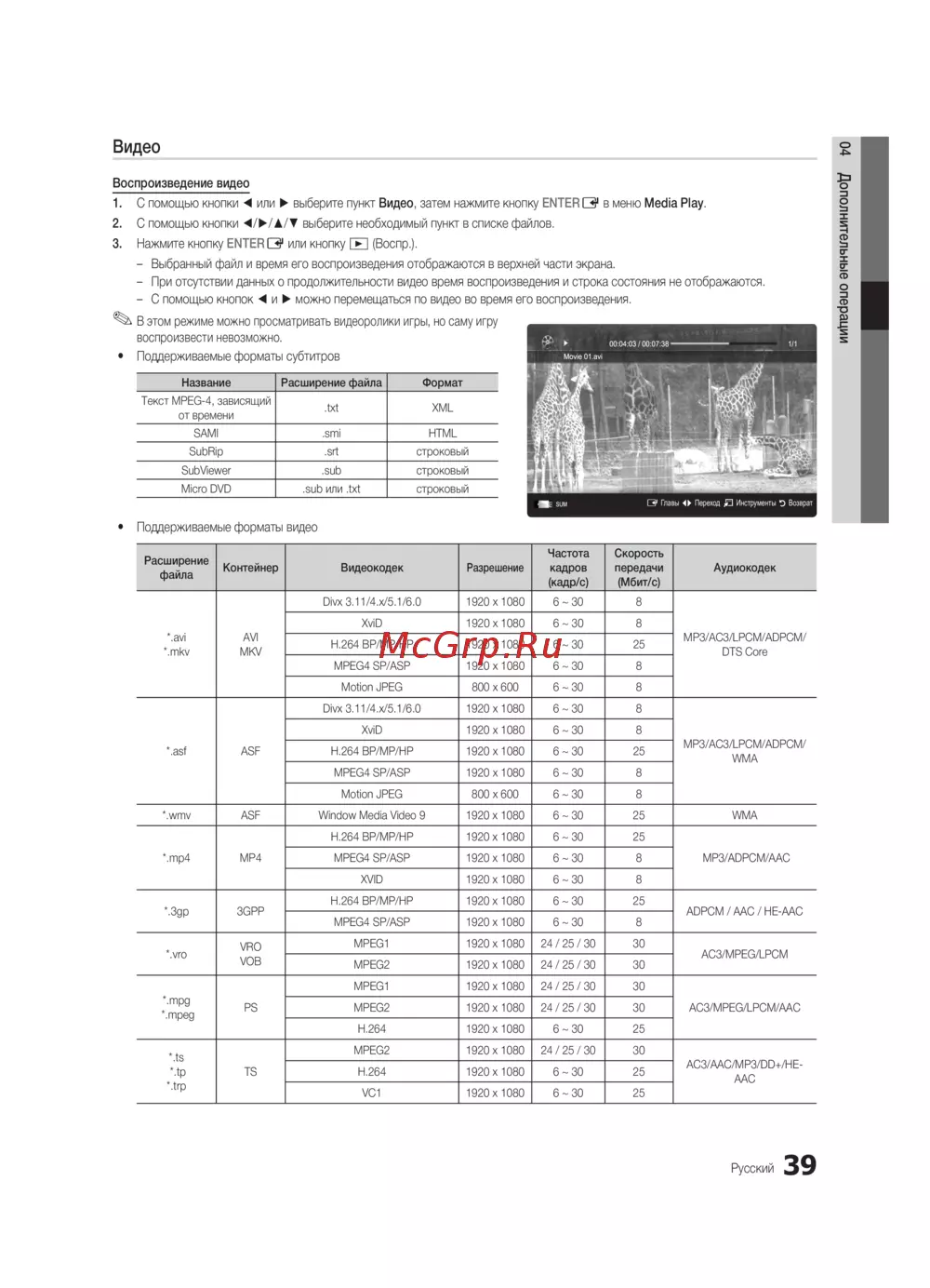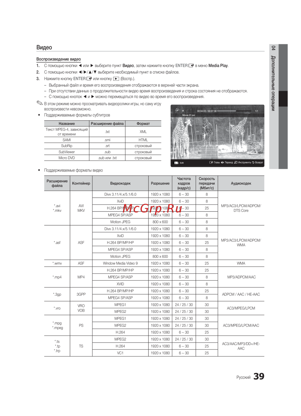 y Поддерживаемые форматы видео