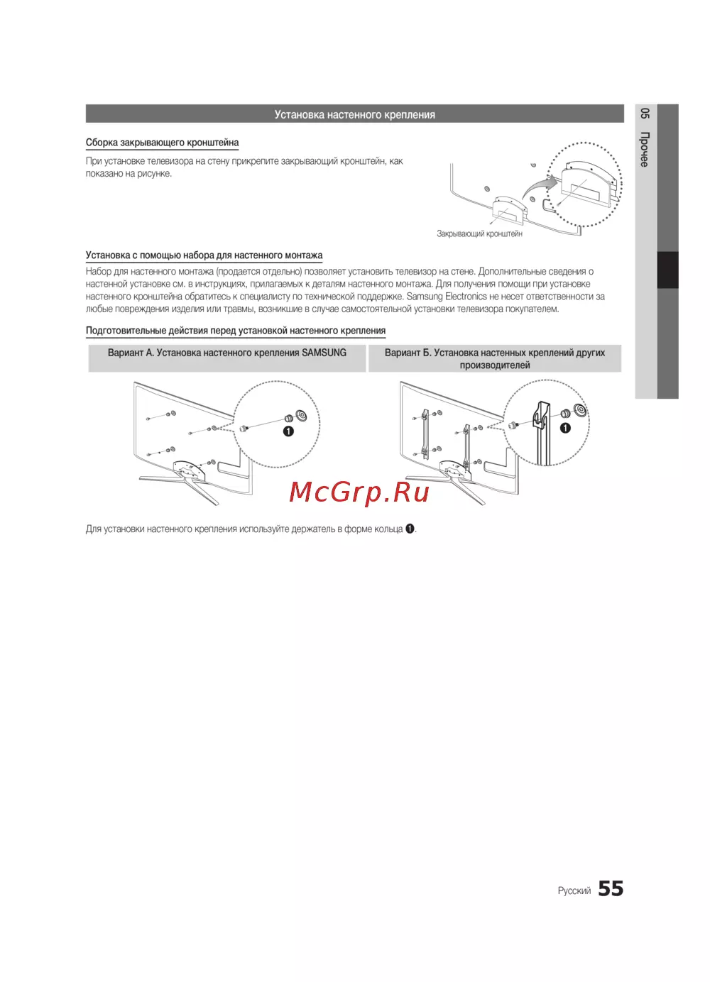 Вариант А. Установка настенного крепления SAMSUNG Вариант Б. Установка настенных креплений других