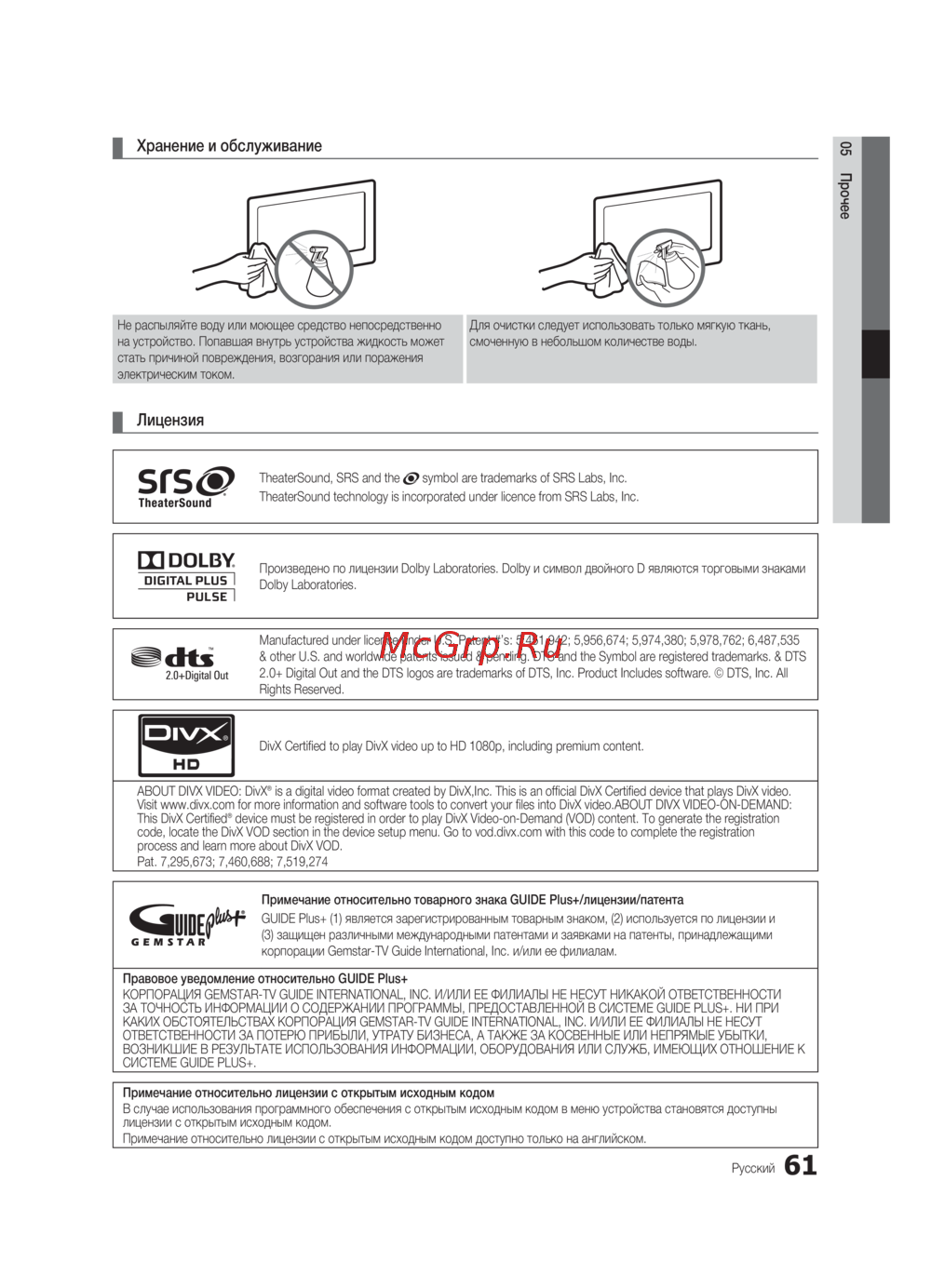 GUIDE Plus+ (1) является зарегистрированным товарным знаком, (2) используется по лицензии и