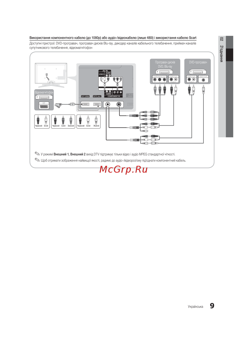 Щоб отримати зображення найвищої якості, радимо до аудіо-/відеороз’єму під’єднати компонентний кабель.