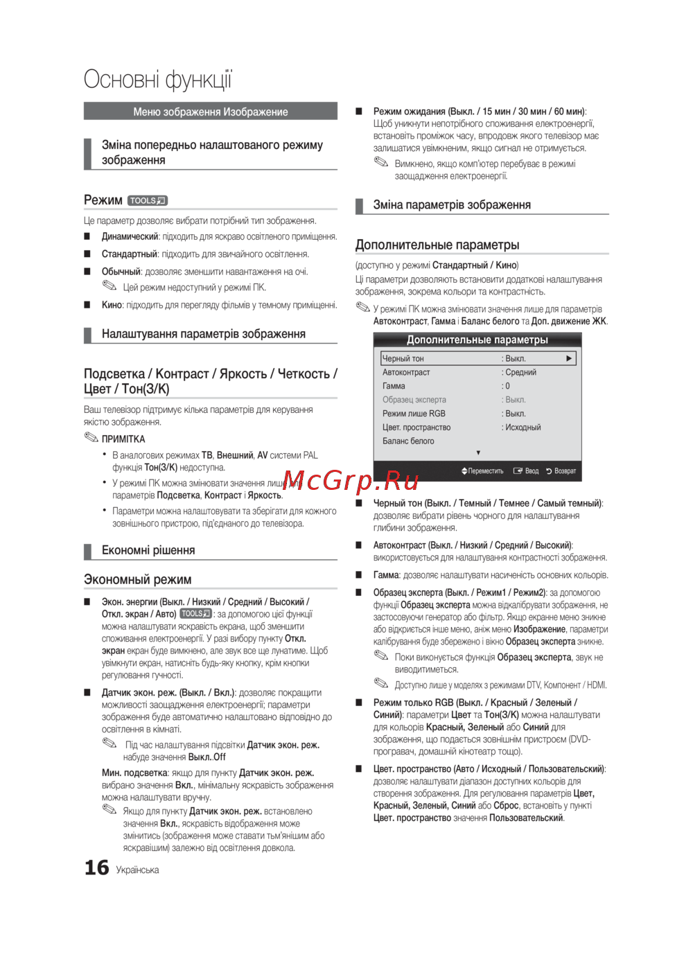Автоконтраст, Гамма і Баланс белого та Доп. движение ЖК.