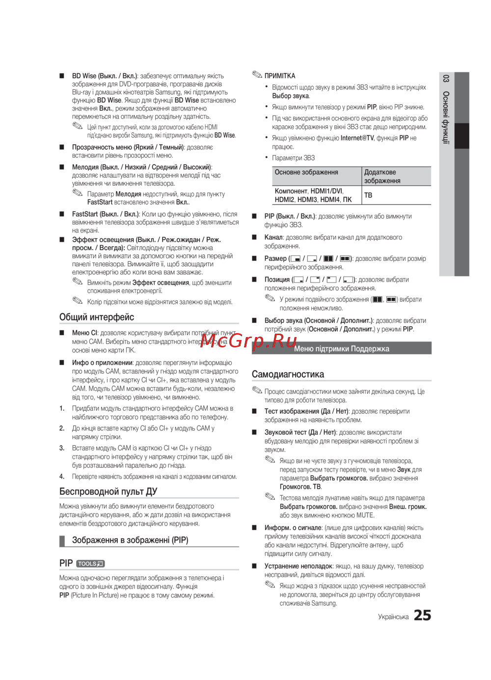 потрібний звук (Основной / Дополнит.) у режимі PIP.