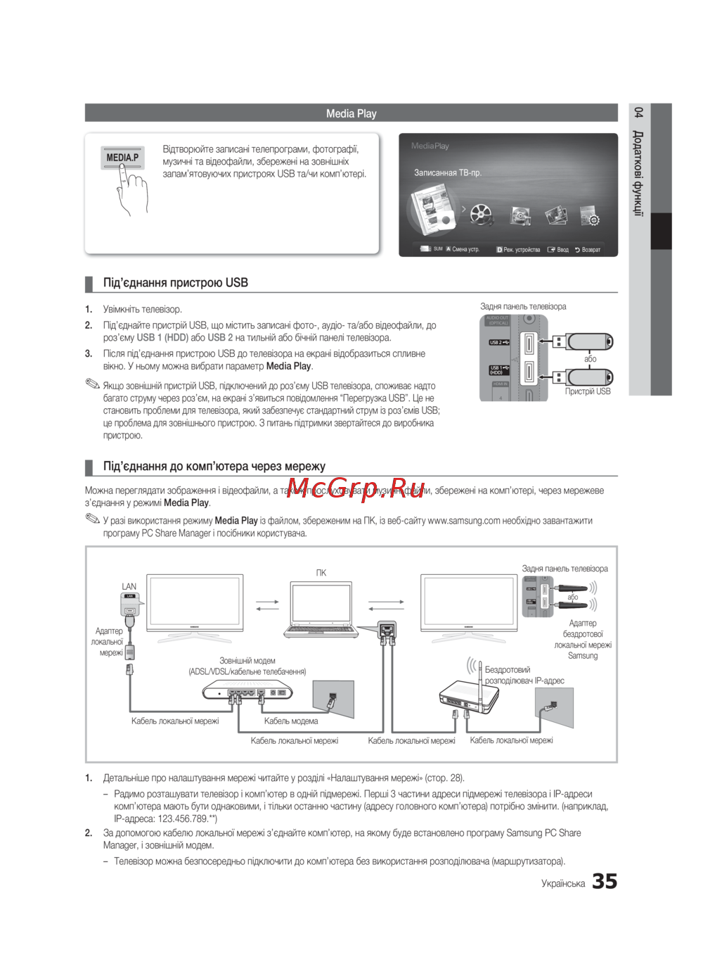 У разі використання режиму Media Play із файлом, збереженим на ПК, із веб-сайту www.samsung.com необхідно завантажити